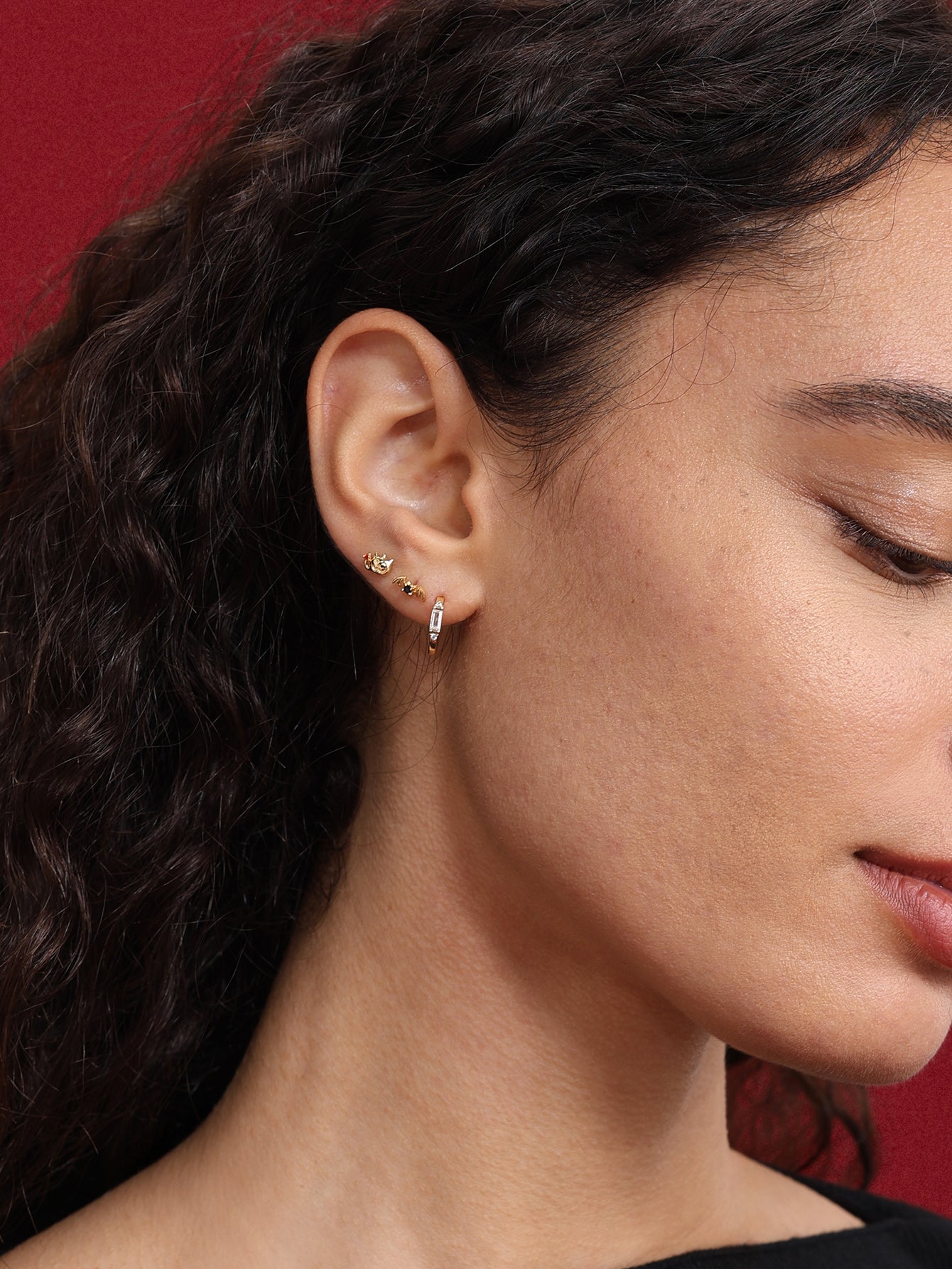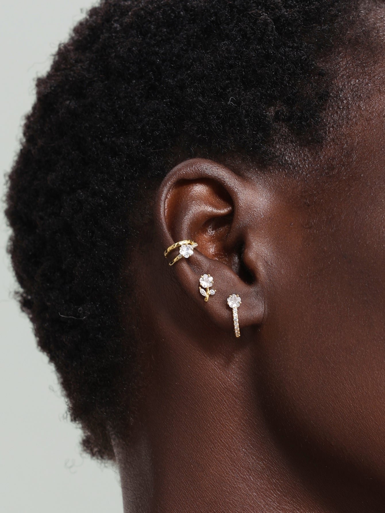925 Sterling Silver Trio Zircon Reversible Ear Piercing Stud$13.59 USD -
