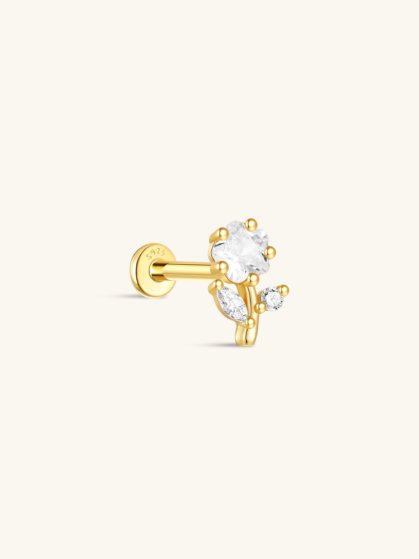 925 Sterling Silver Elegant Small Ear Piercing Stud$15.19 USD -