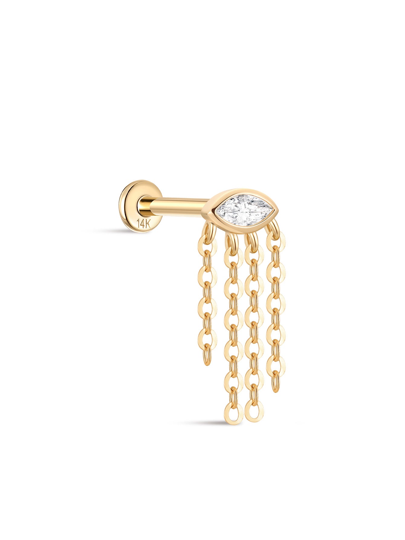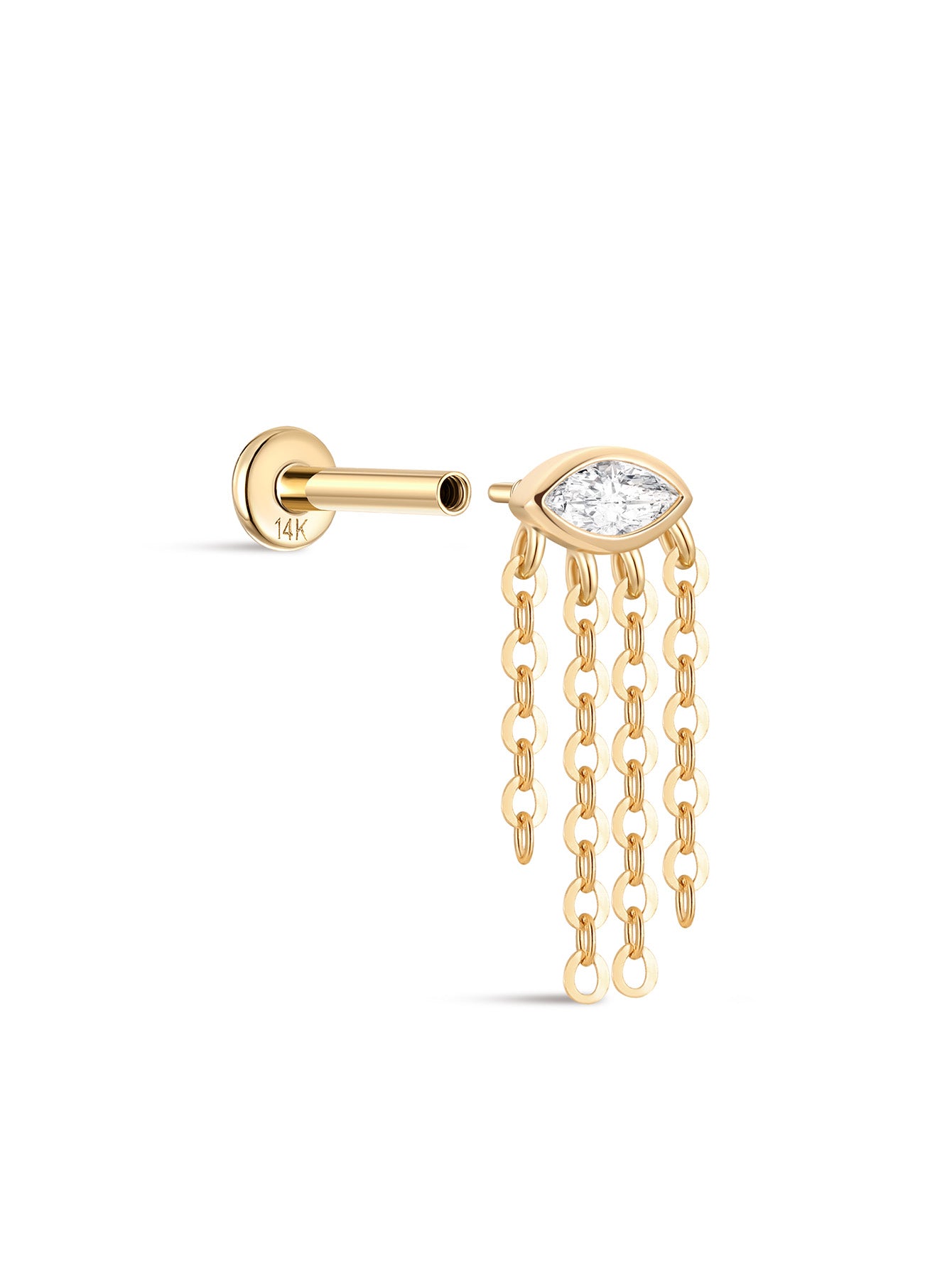 14K Solid Gold Tassel Devil Eyes Ear Piercing Stud