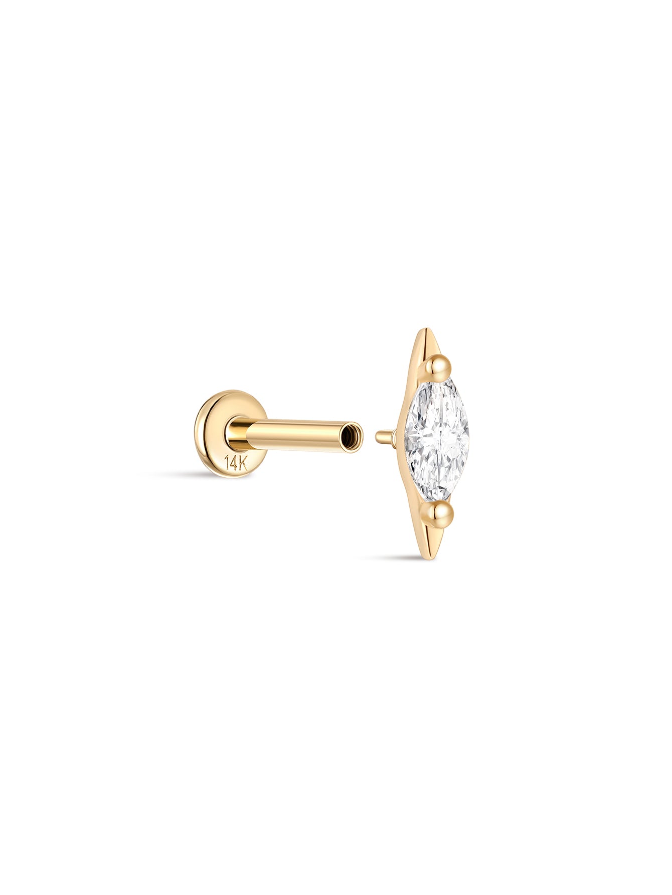 14k Solid Gold Teardrop Flat Head Ear Piercing Stud
