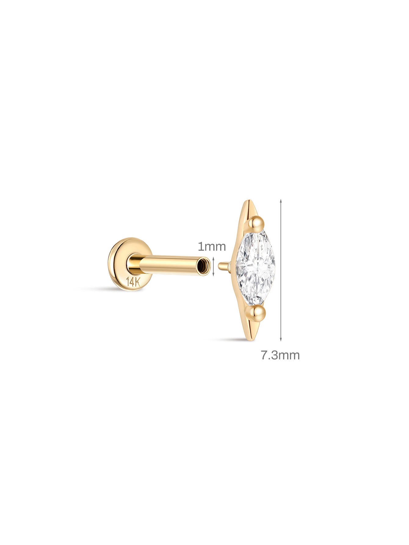 • Materials: 14K Solid Gold Top,14K Solid Gold Flatback Post