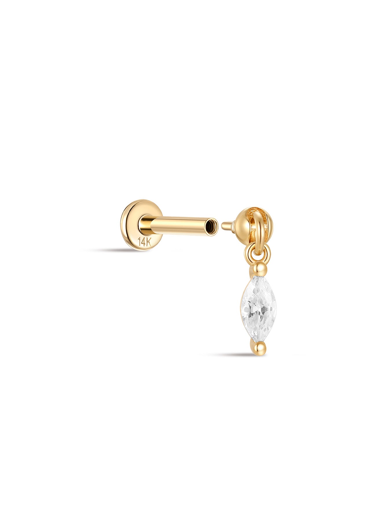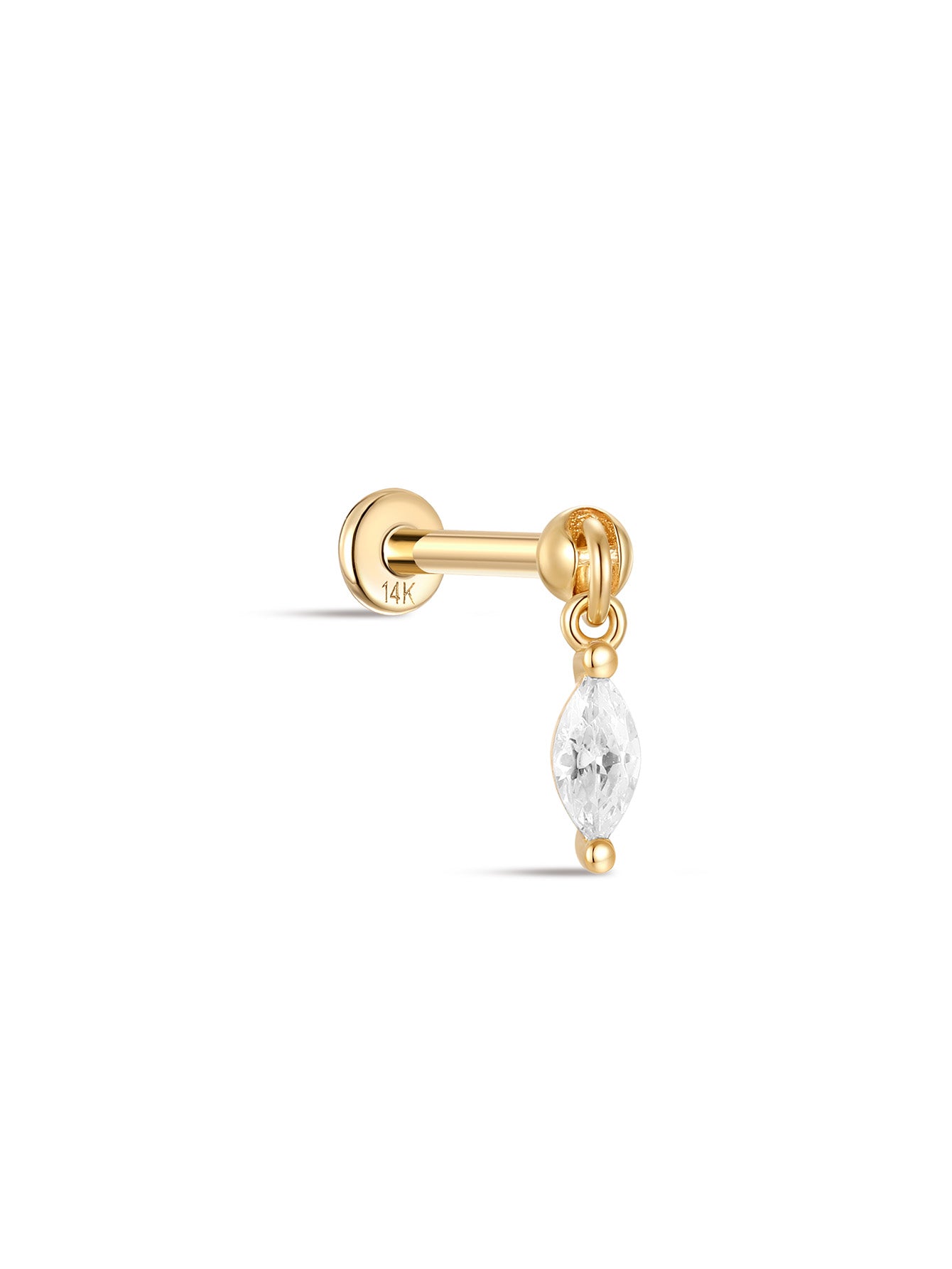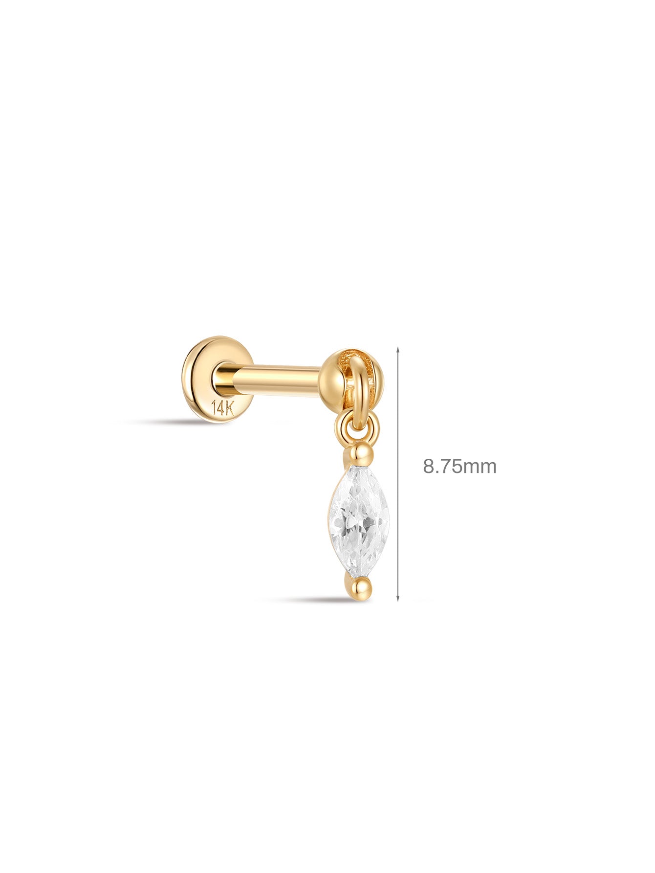 14K Solid Gold Single Zircon Pendant Ear Piercing Stud