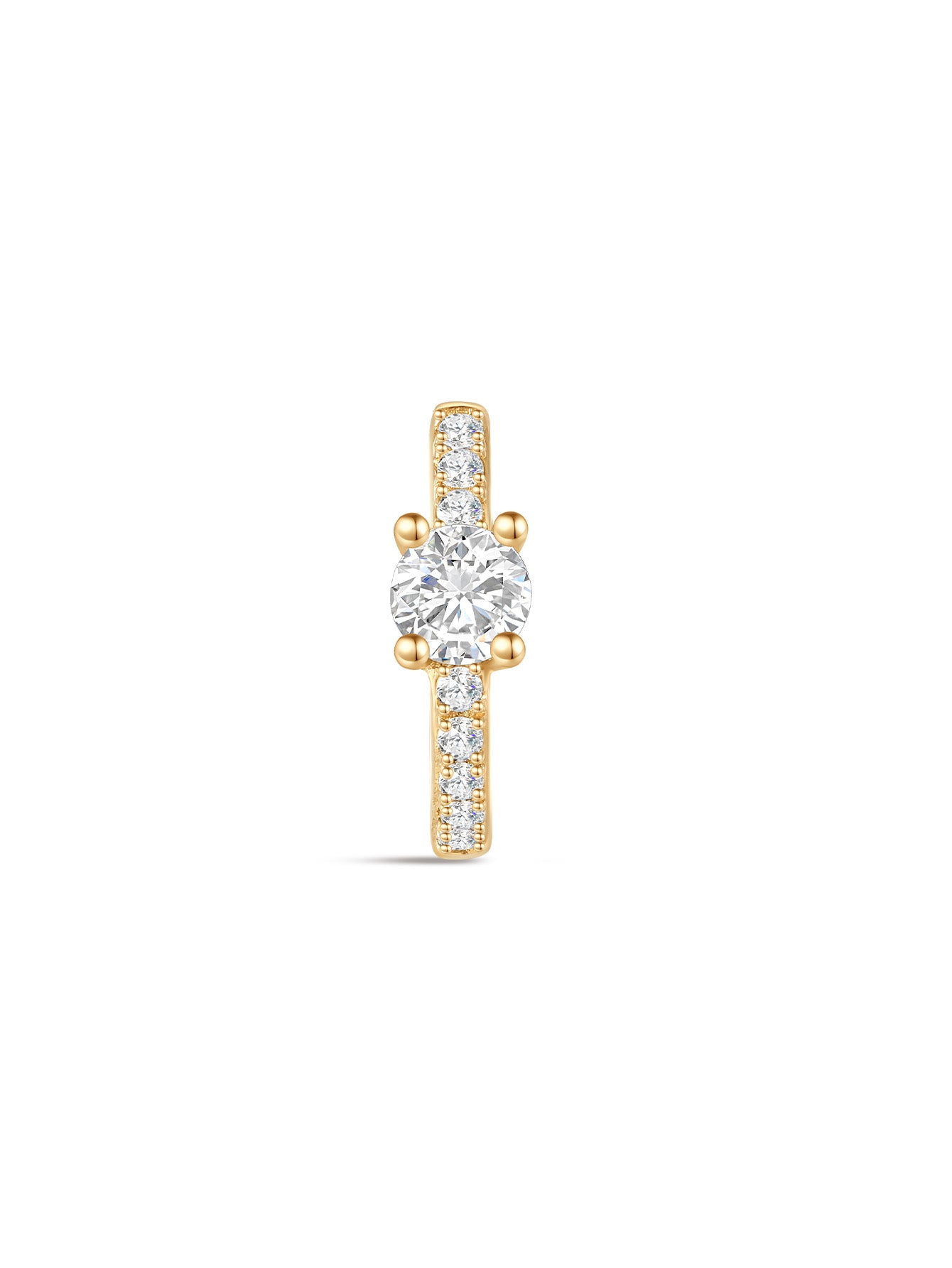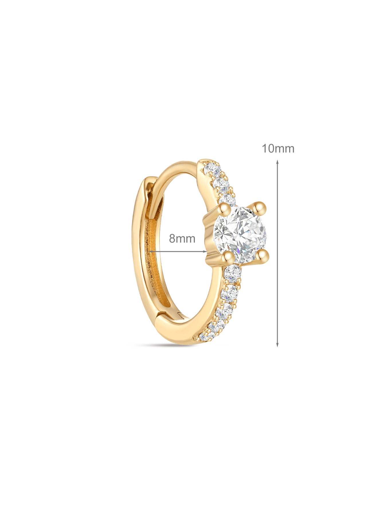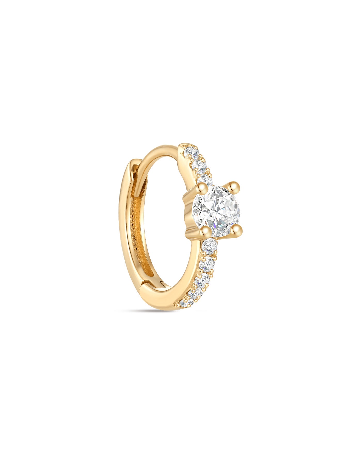 14K Solid Gold Single Zircon Huggies Earring