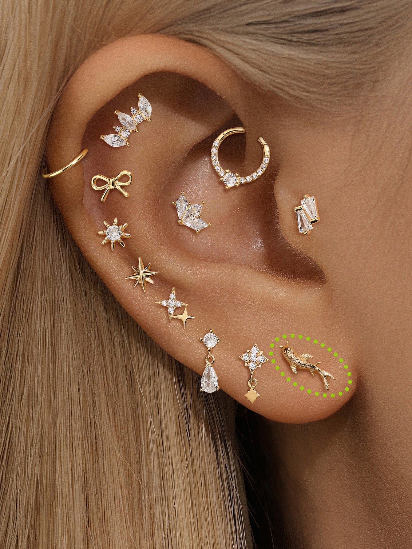 14K Solid Gold Shiny Goldfish Ear Piercing Stud