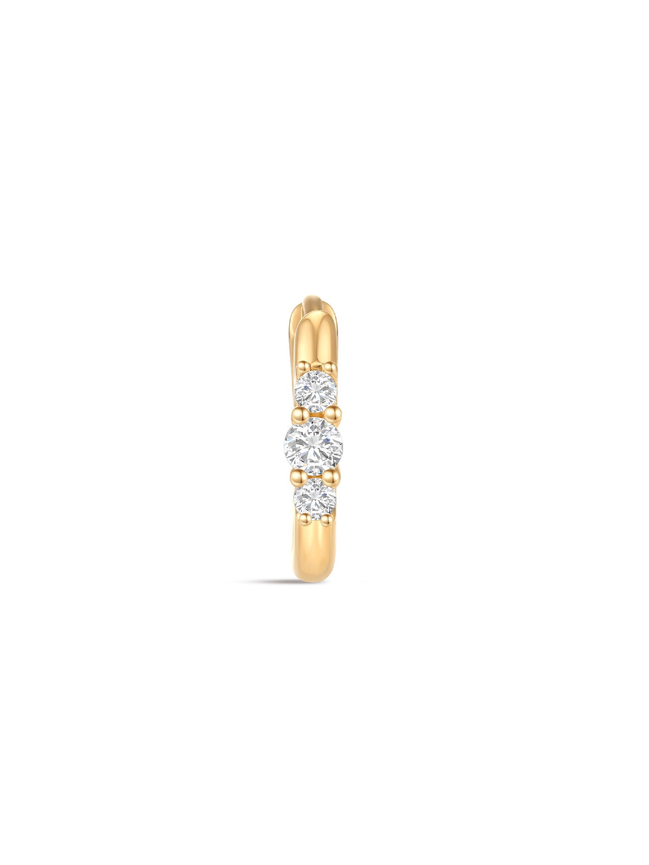 14K Solid Gold Classic Tri-zircon Huggies Earring