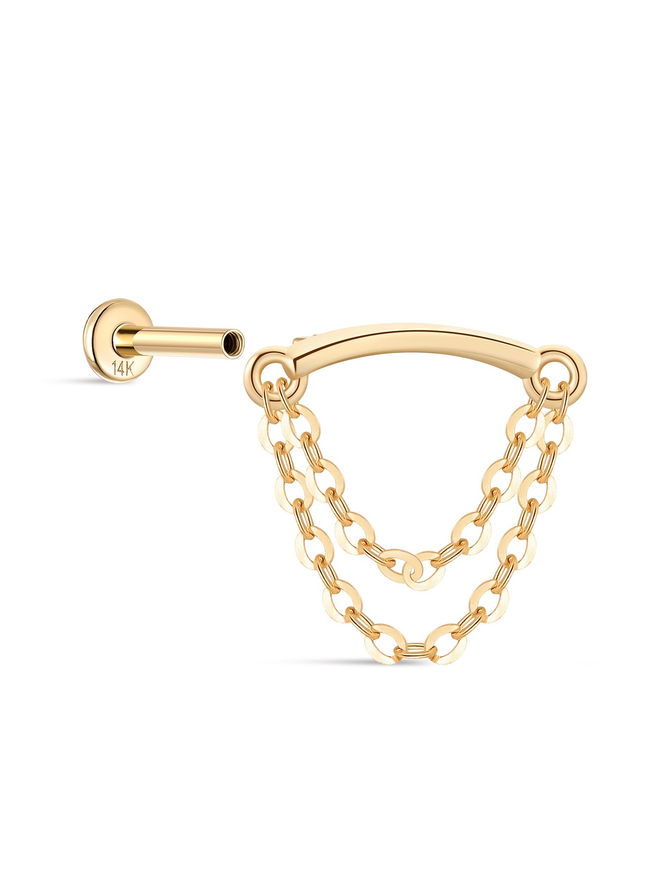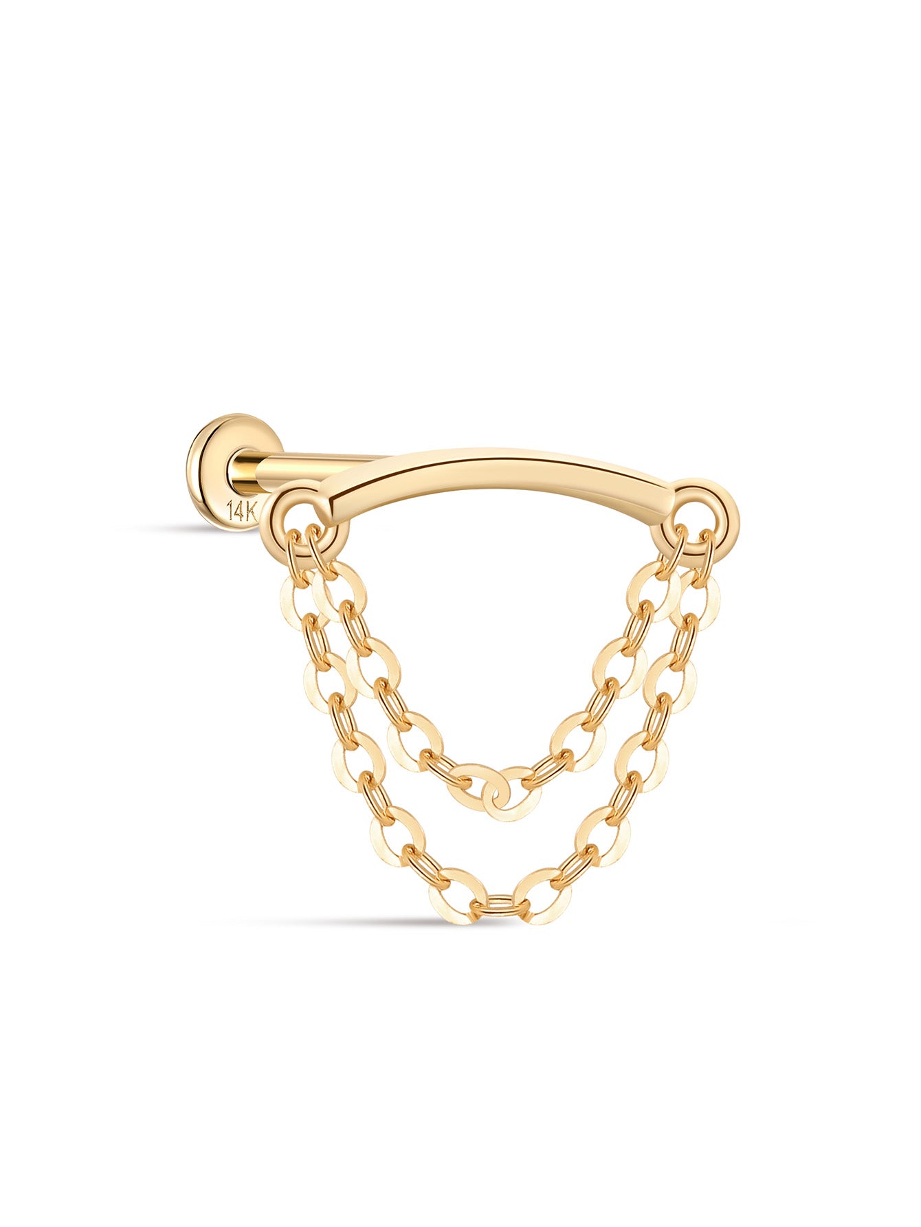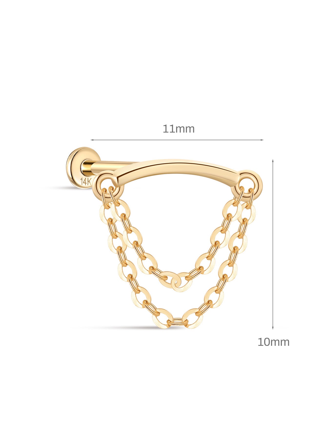 14K Solid Gold Double Tassel Chain Ear Piercing Stud