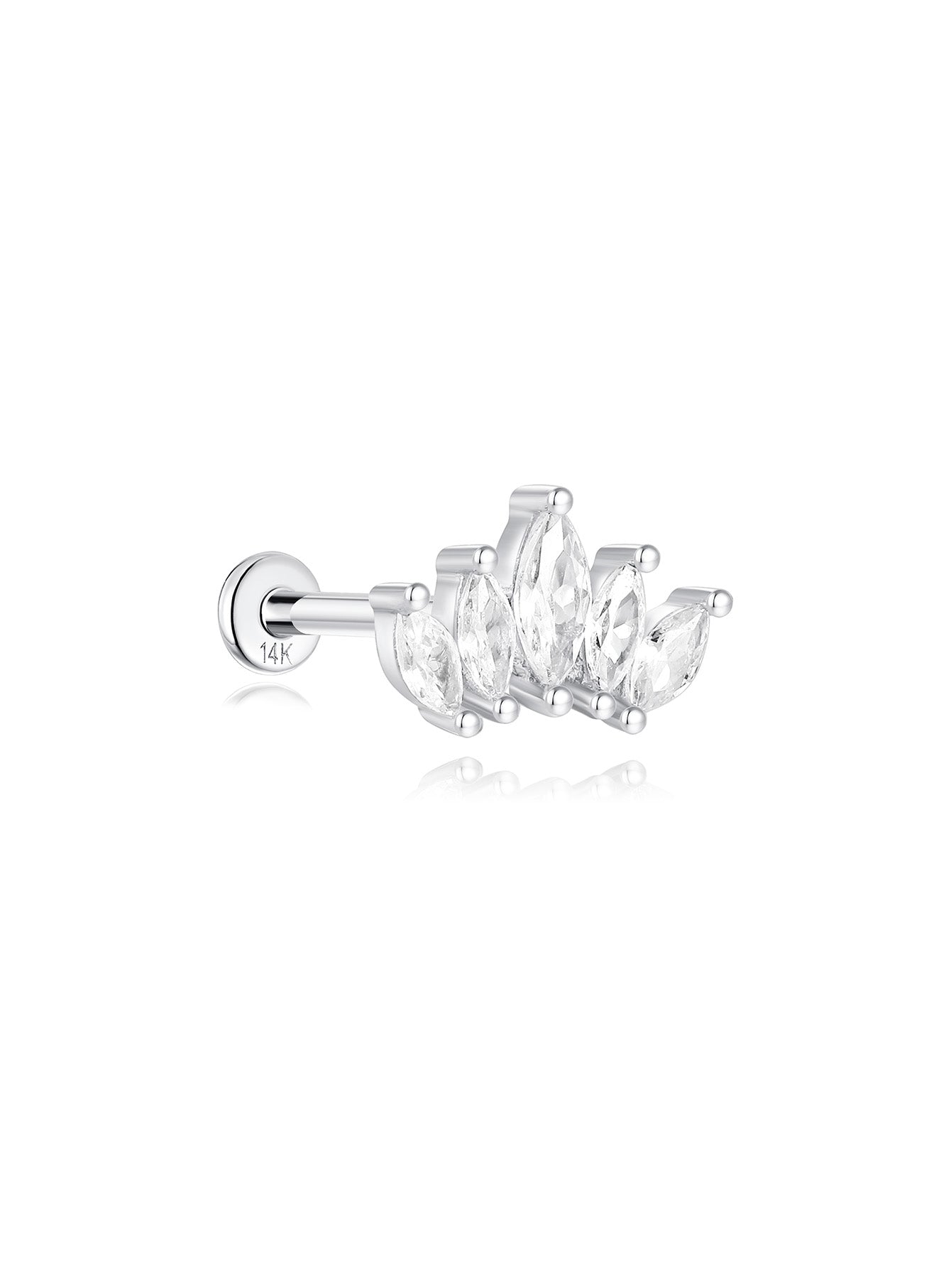 14K Solid Gold Crown Marquise Zircon Ear Piercing Stud