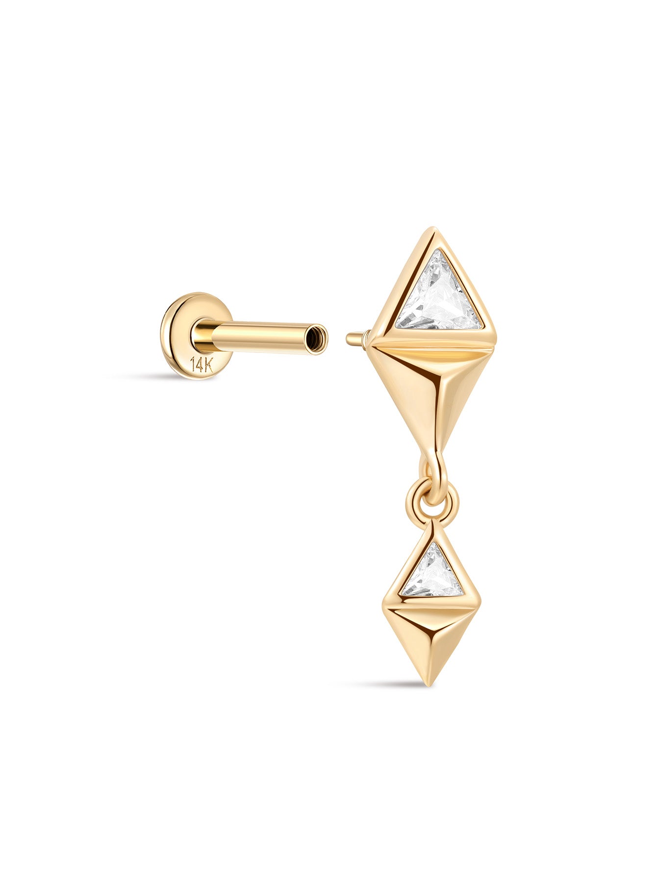 14K Solid Gold Cross Shape Flatback Ear Piercing