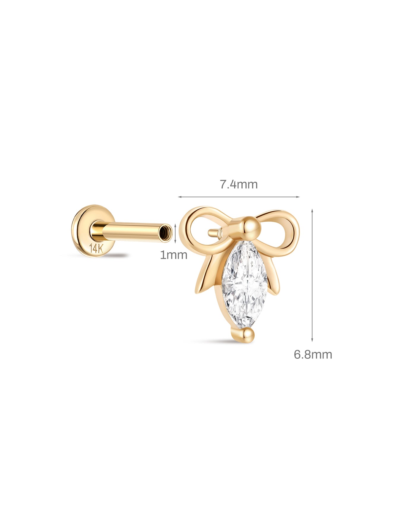 14k Solid Gold Bowknot Flat Head Ear Piercing Stud