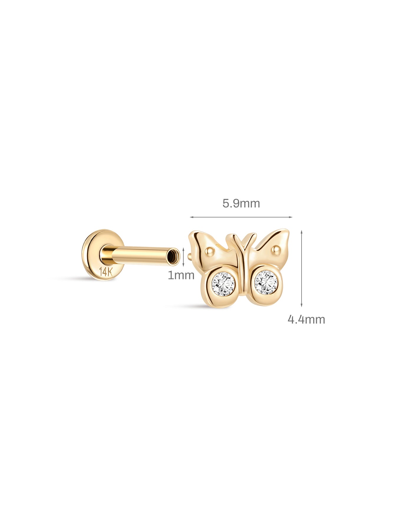 14K Solid Gold Butterfly Flat Back