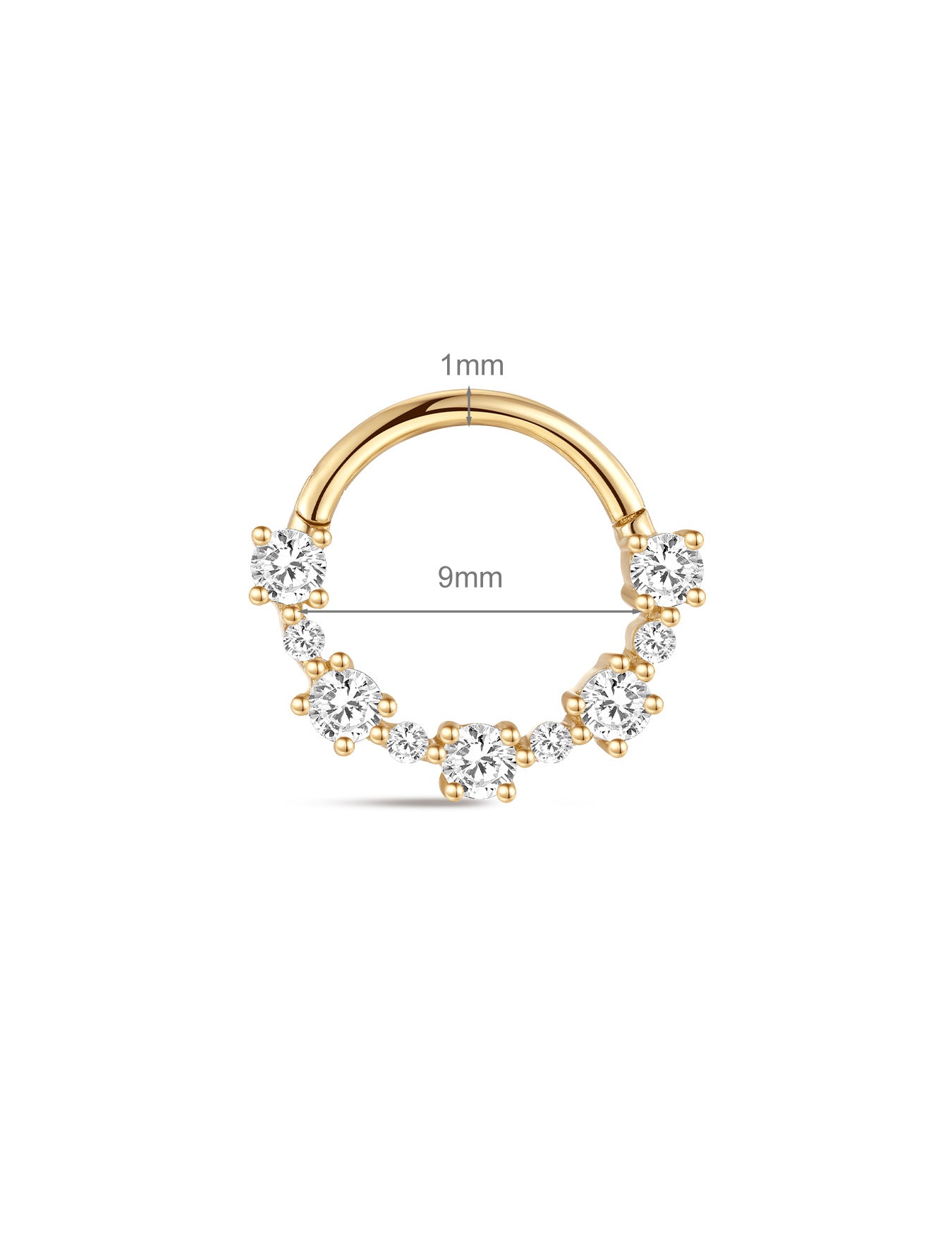 14K Solid Gold Crystal Daith Ear Piercing Ring Hoop