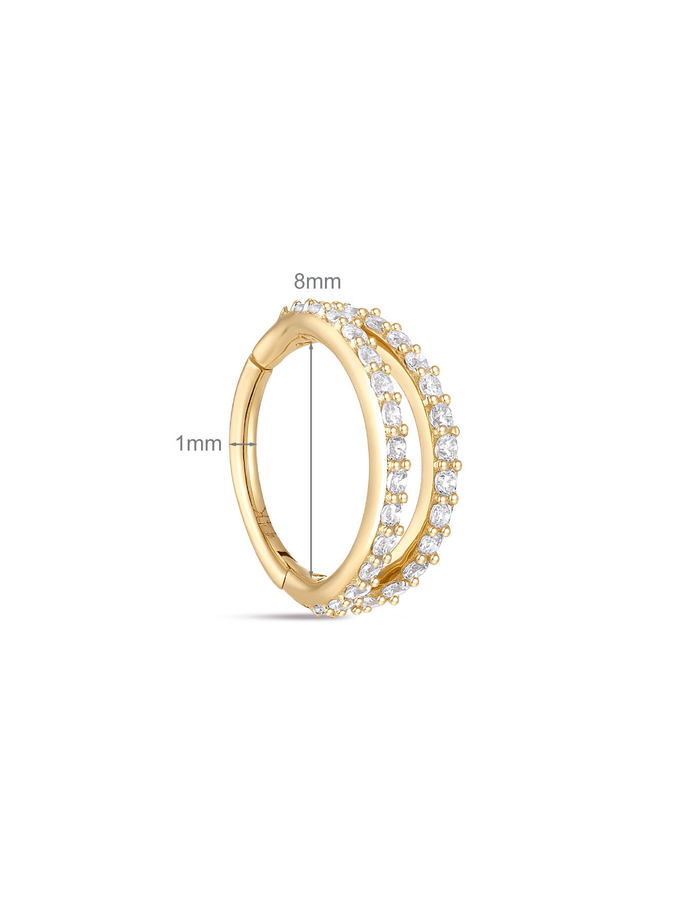 14K Solid Gold Double Layer Full Zircon Huggies Earring