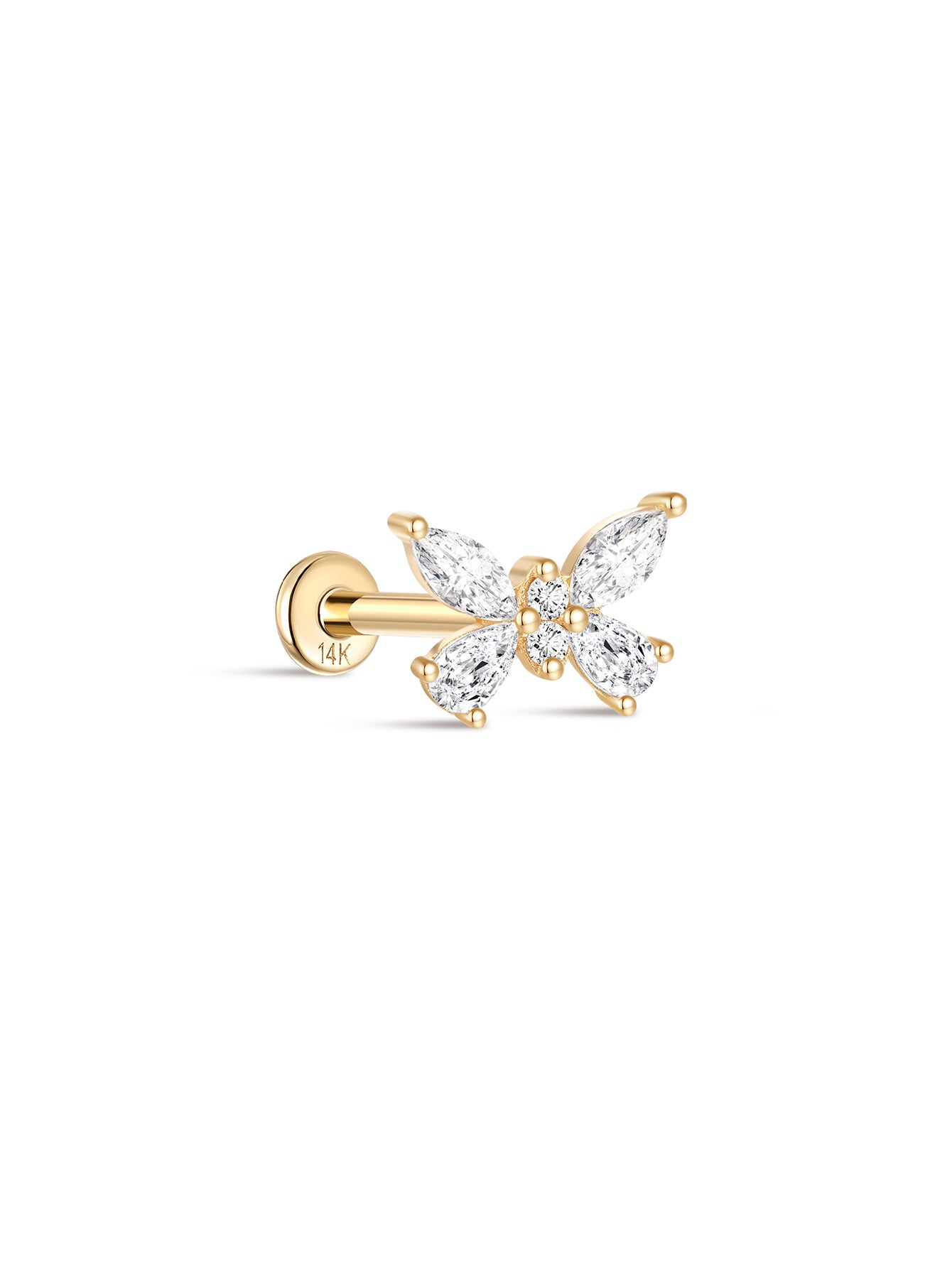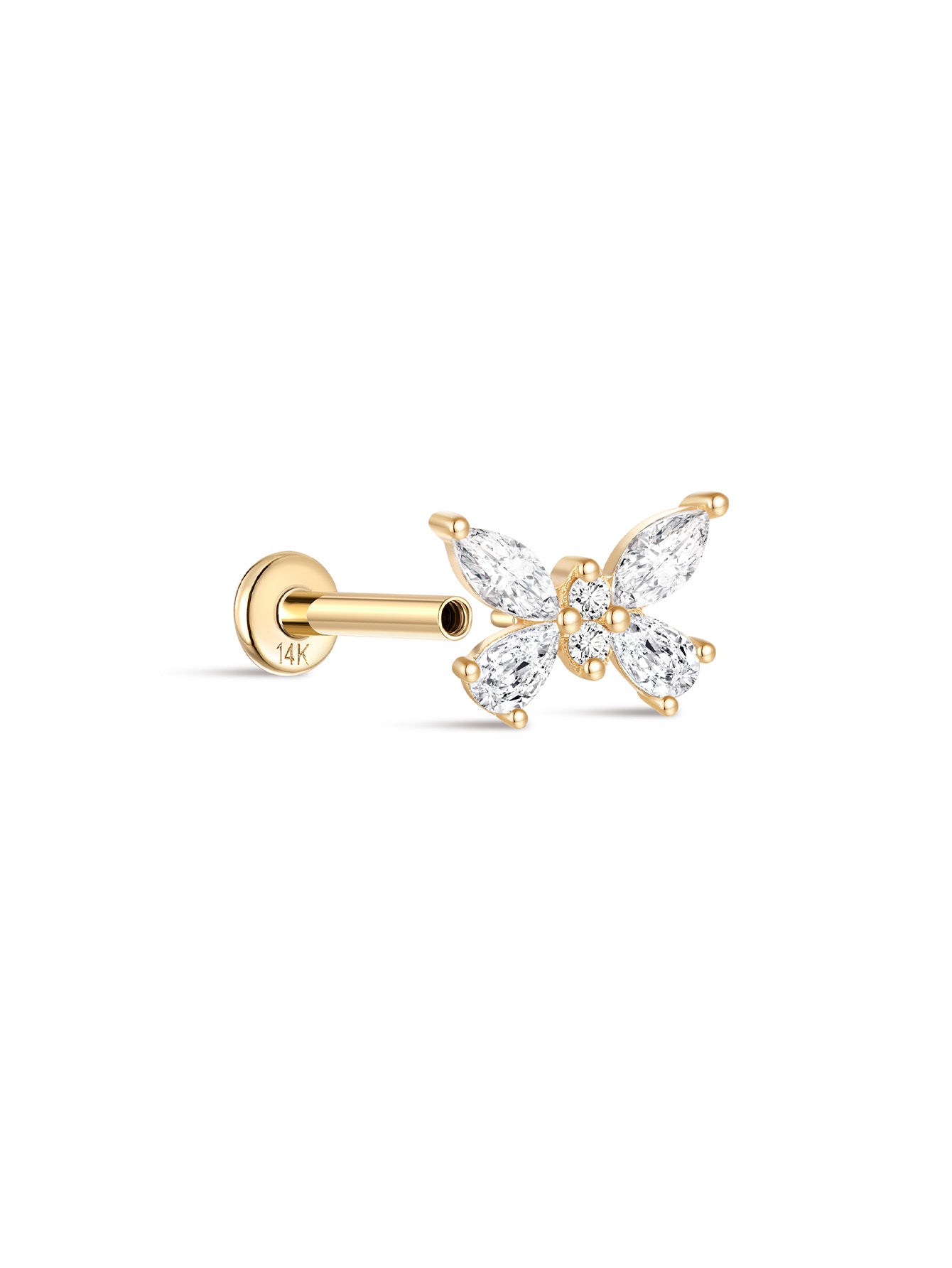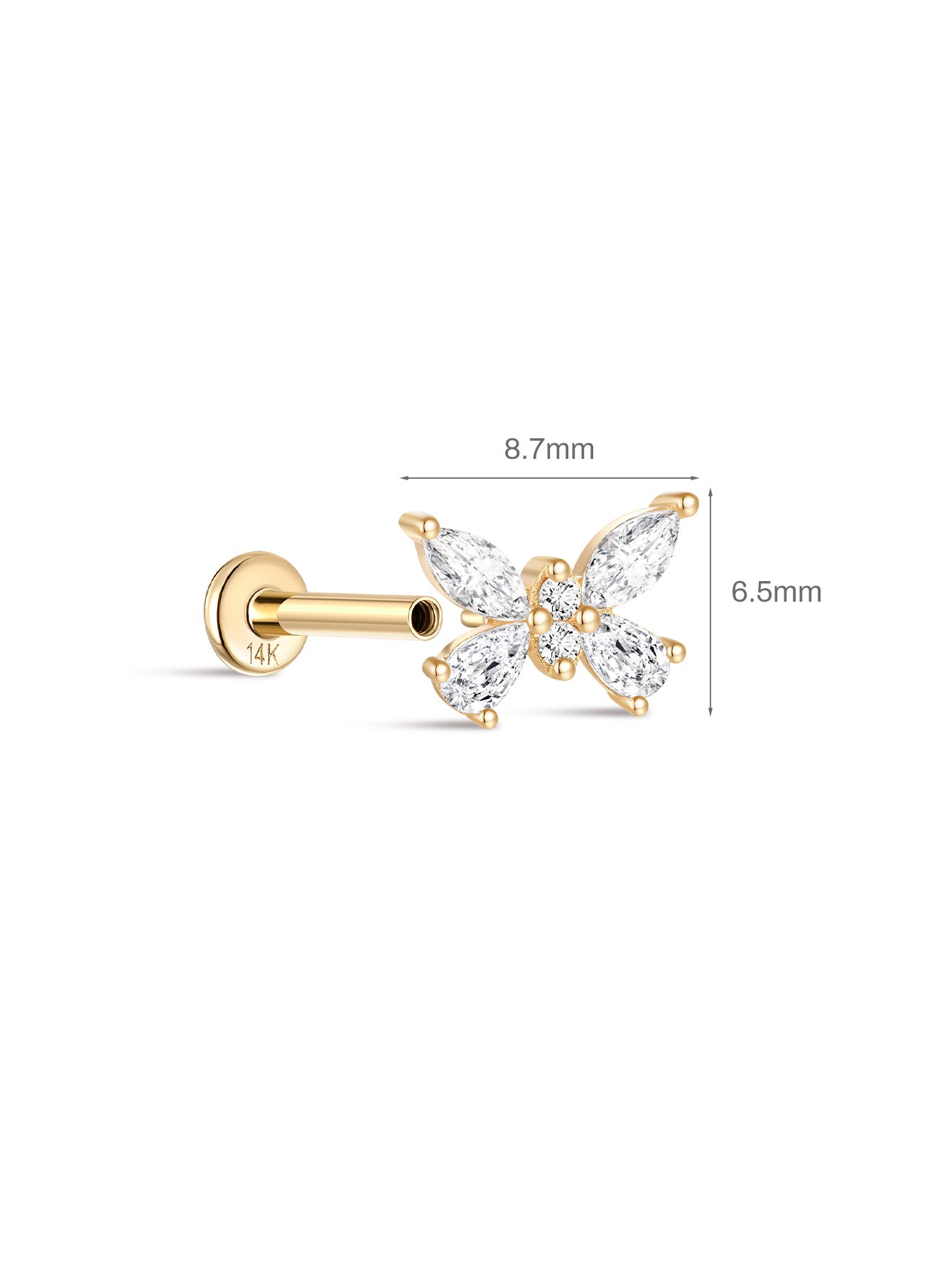 14K Solid Gold Elegant Butterfly Ear Piercing Stud