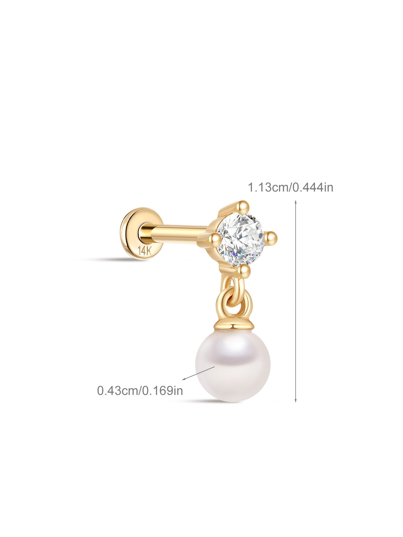 14K Solid Gold Elegant Pearl Pendant Ear Piercing Stud
