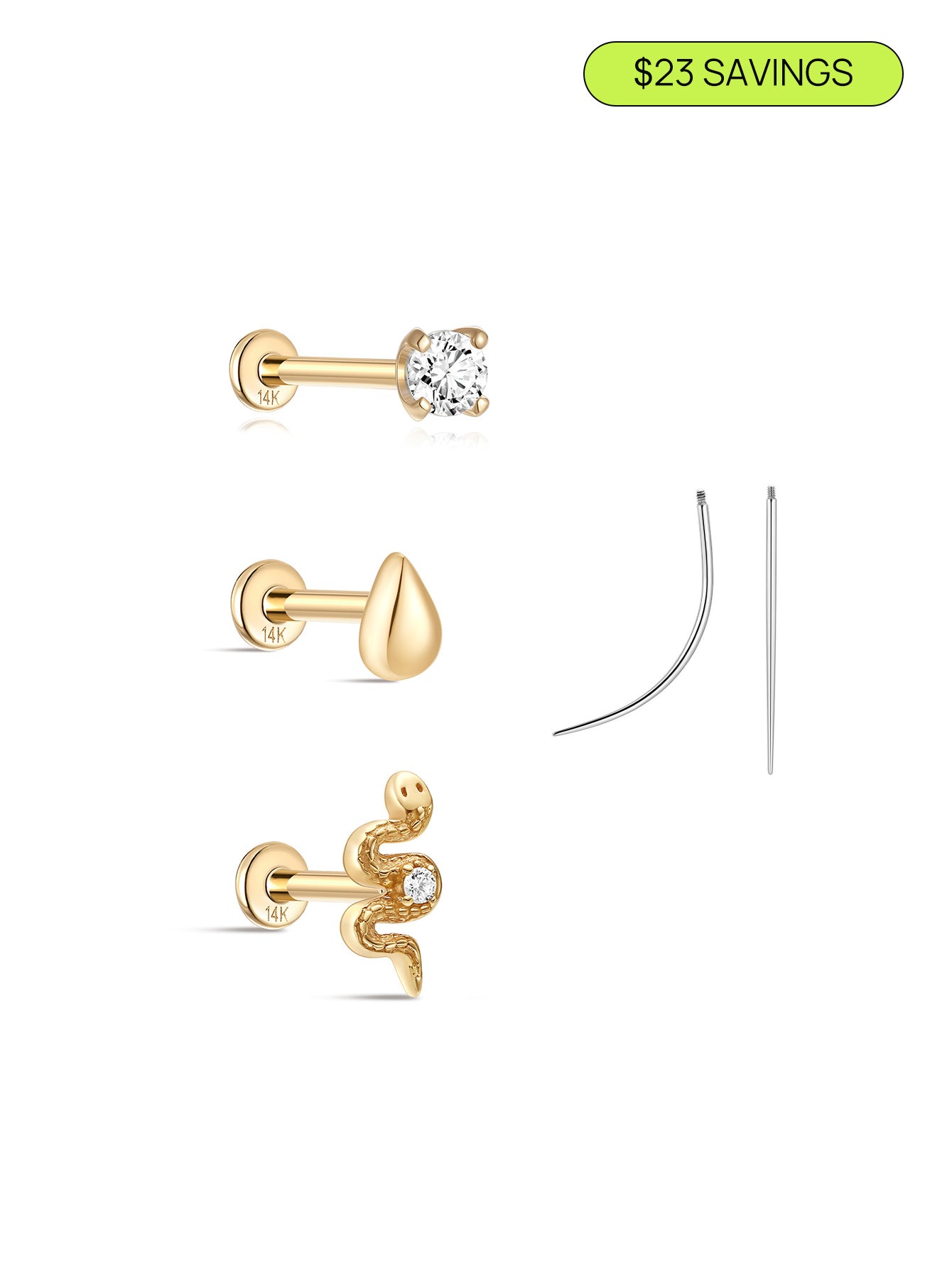 14K Solid Gold Flatback Snake Set