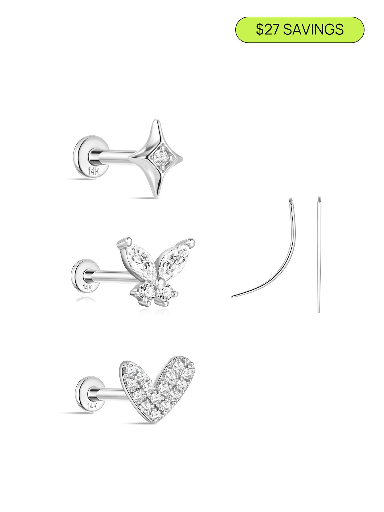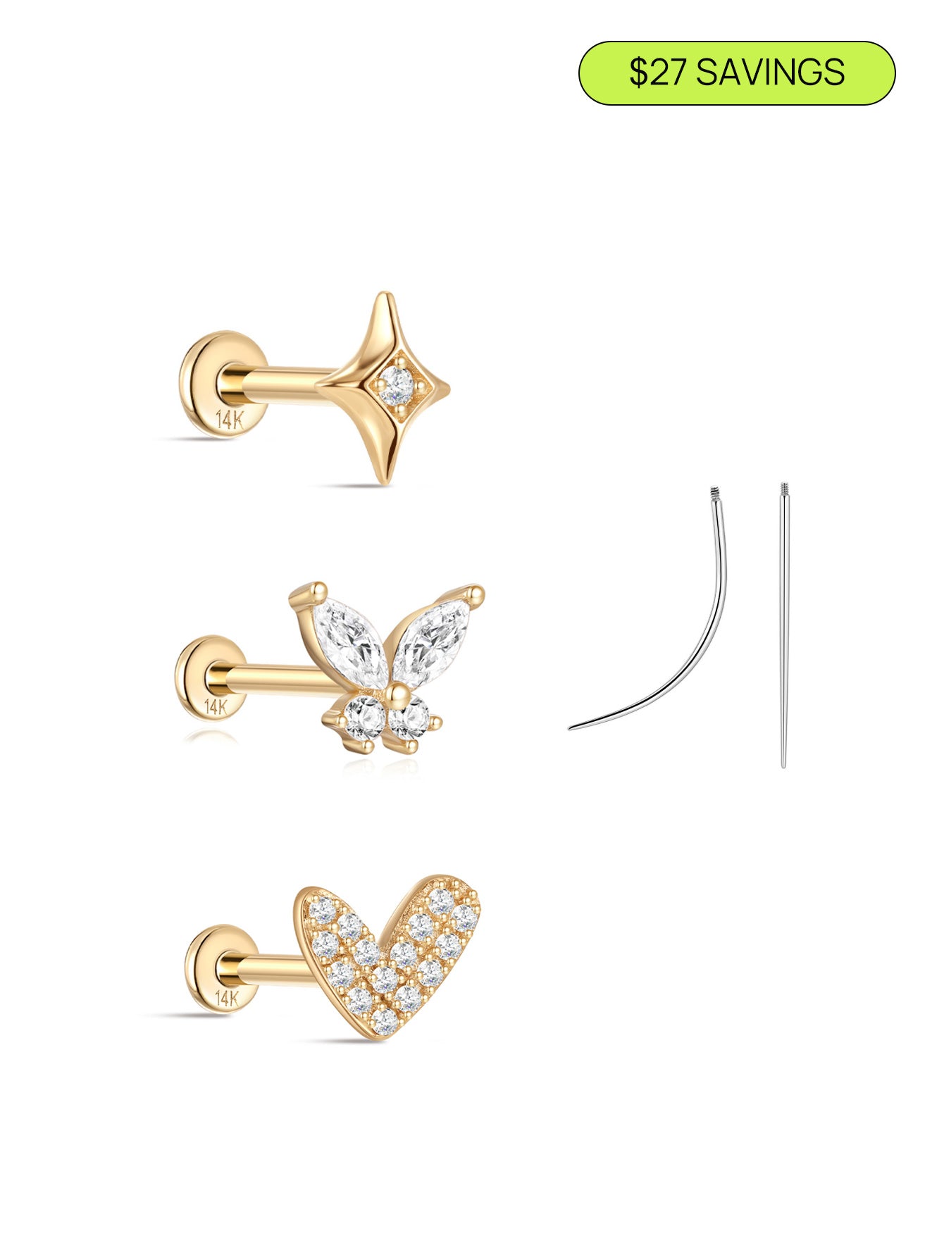 14K Solid Gold Flatback Sparkle Set