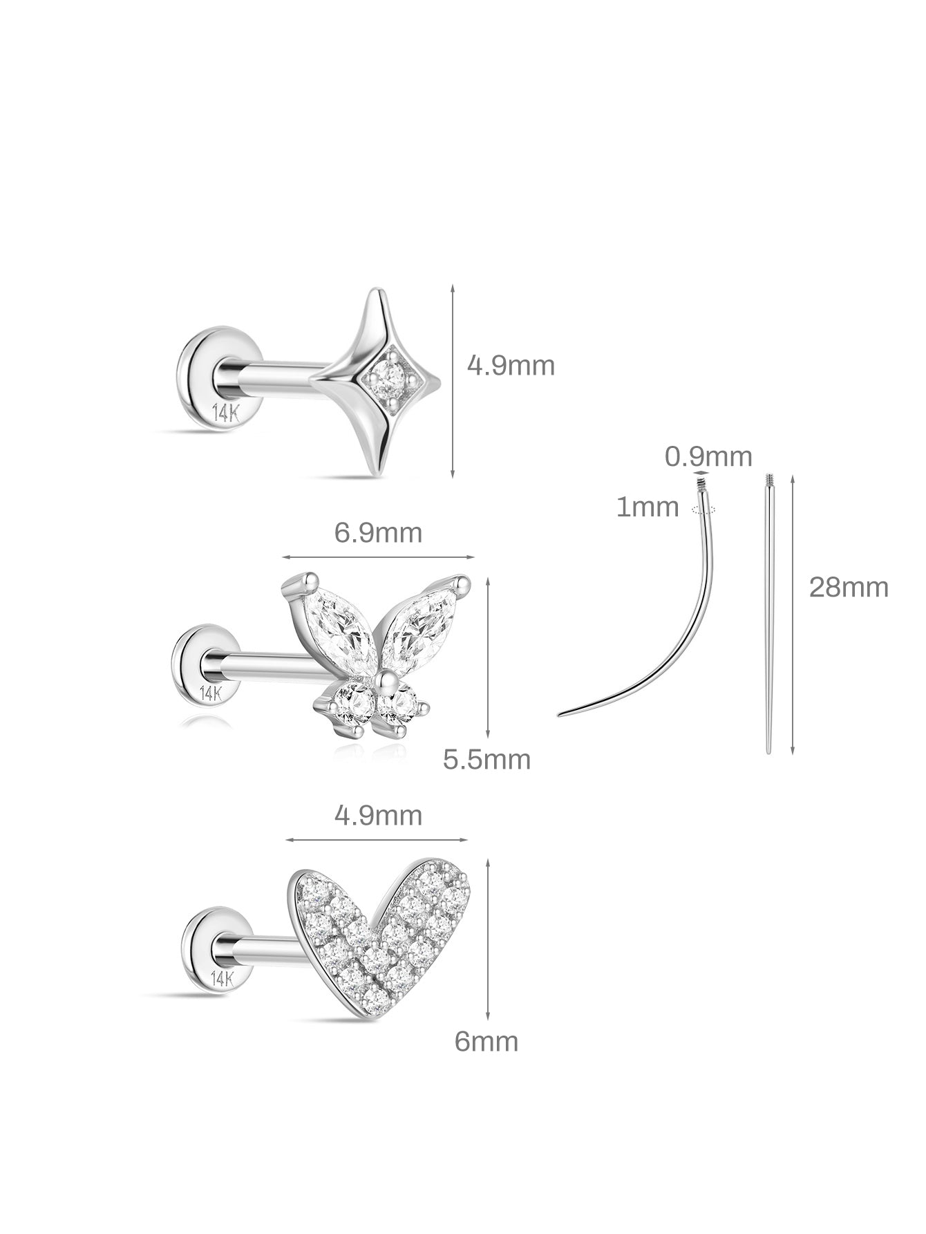 • Post Length: 5 mm/ 6.5 mm/ 8 mm