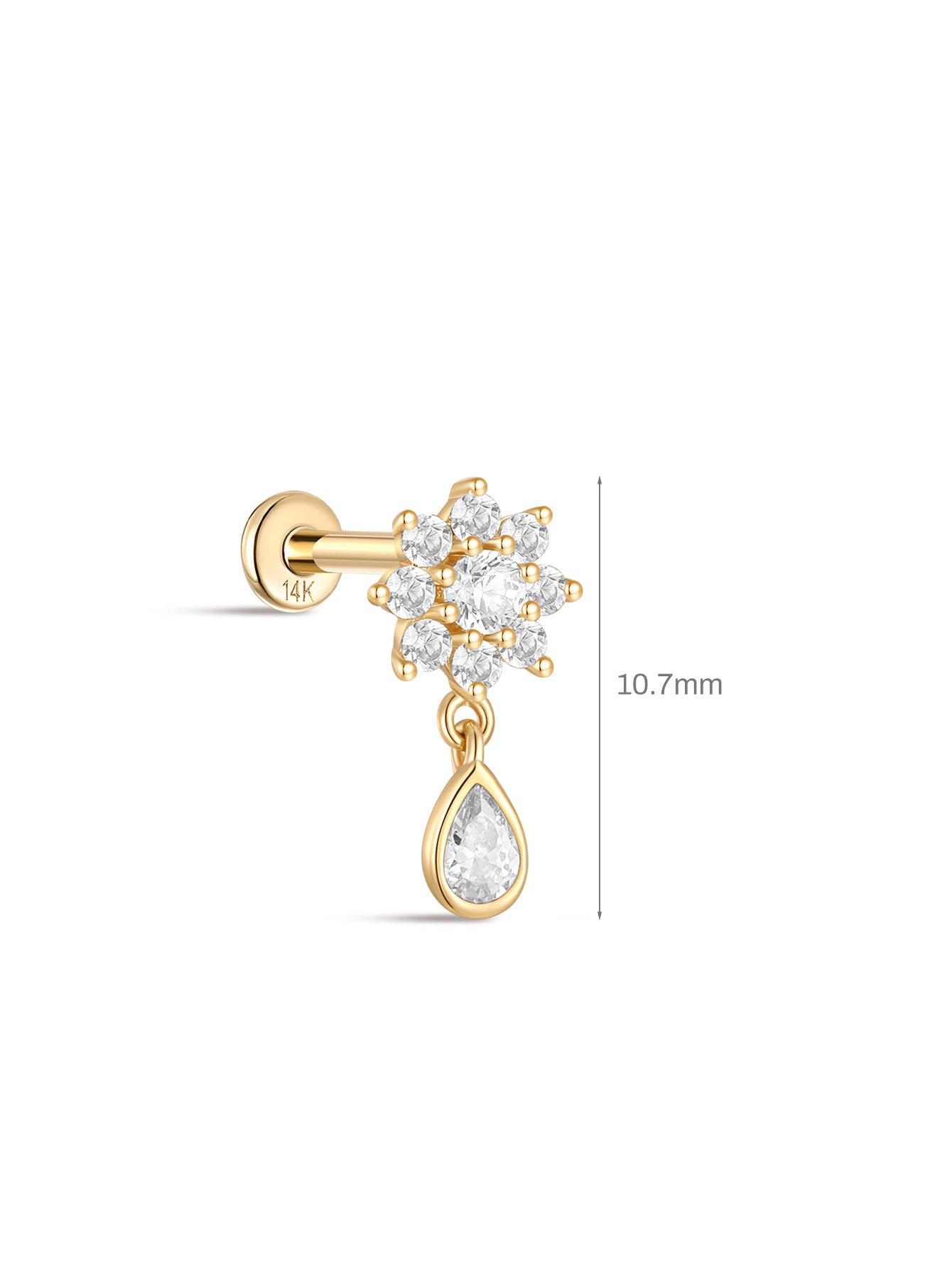 14K Solid Gold Flower Pendant Ear Piercing Stud