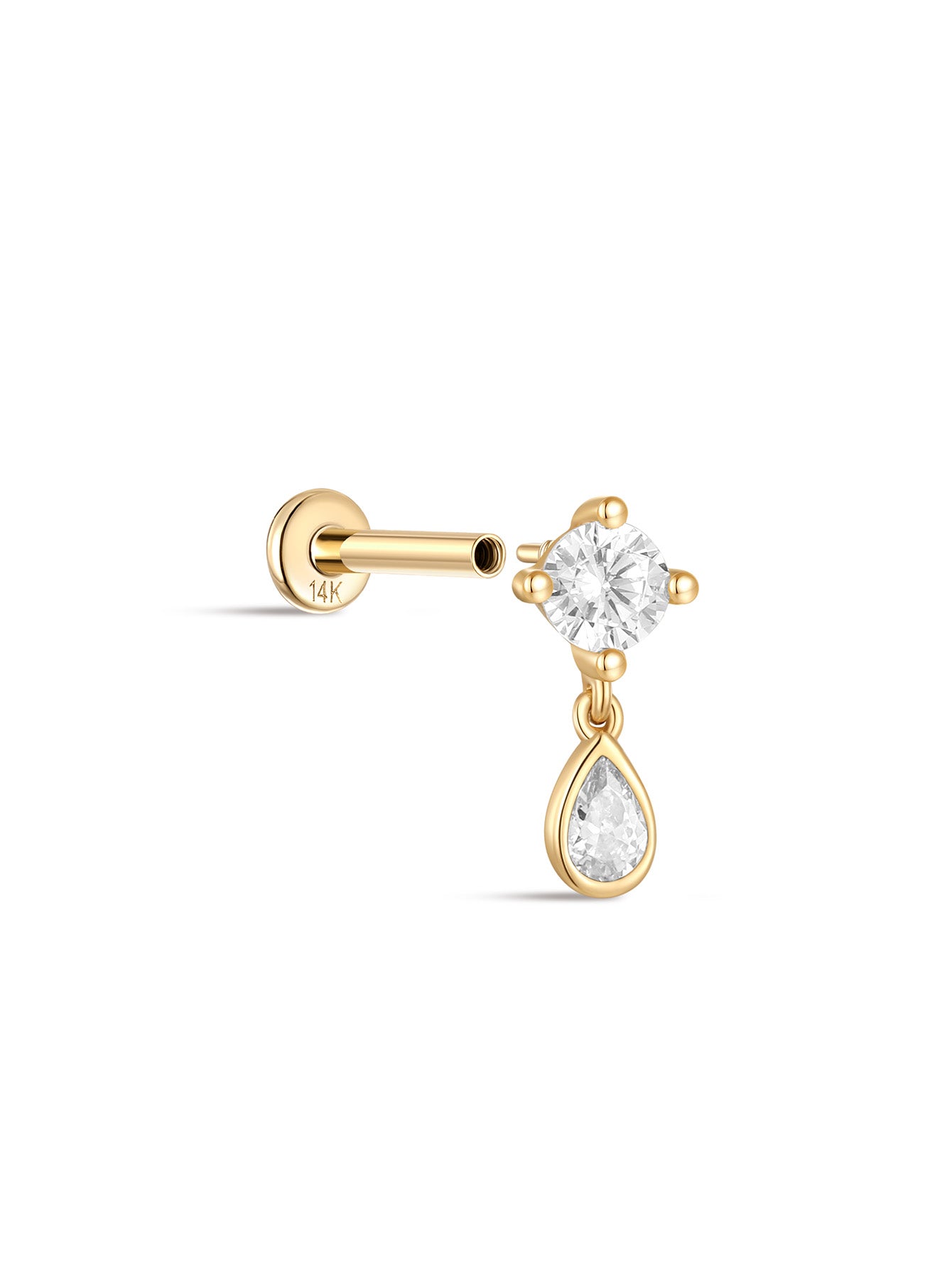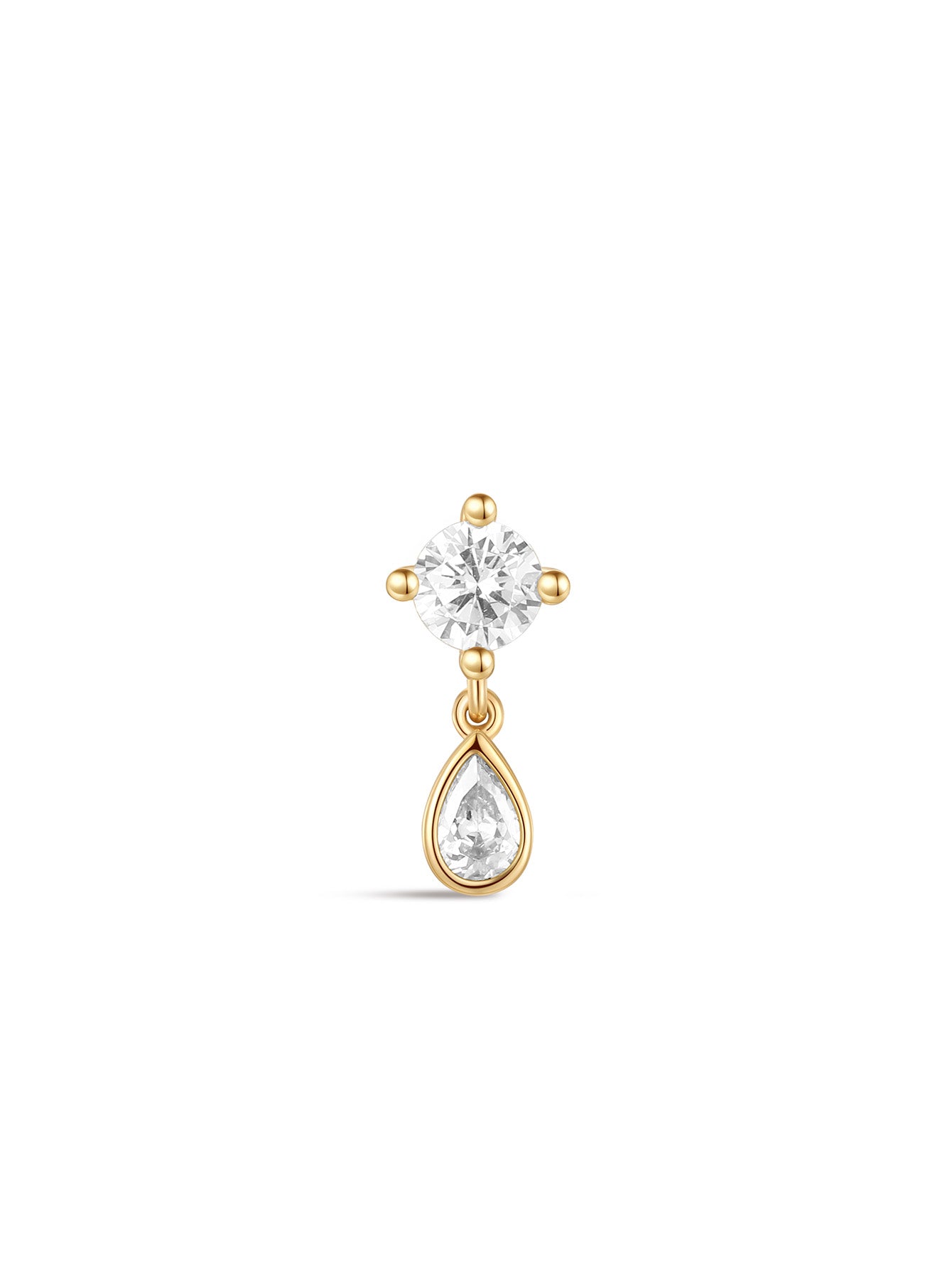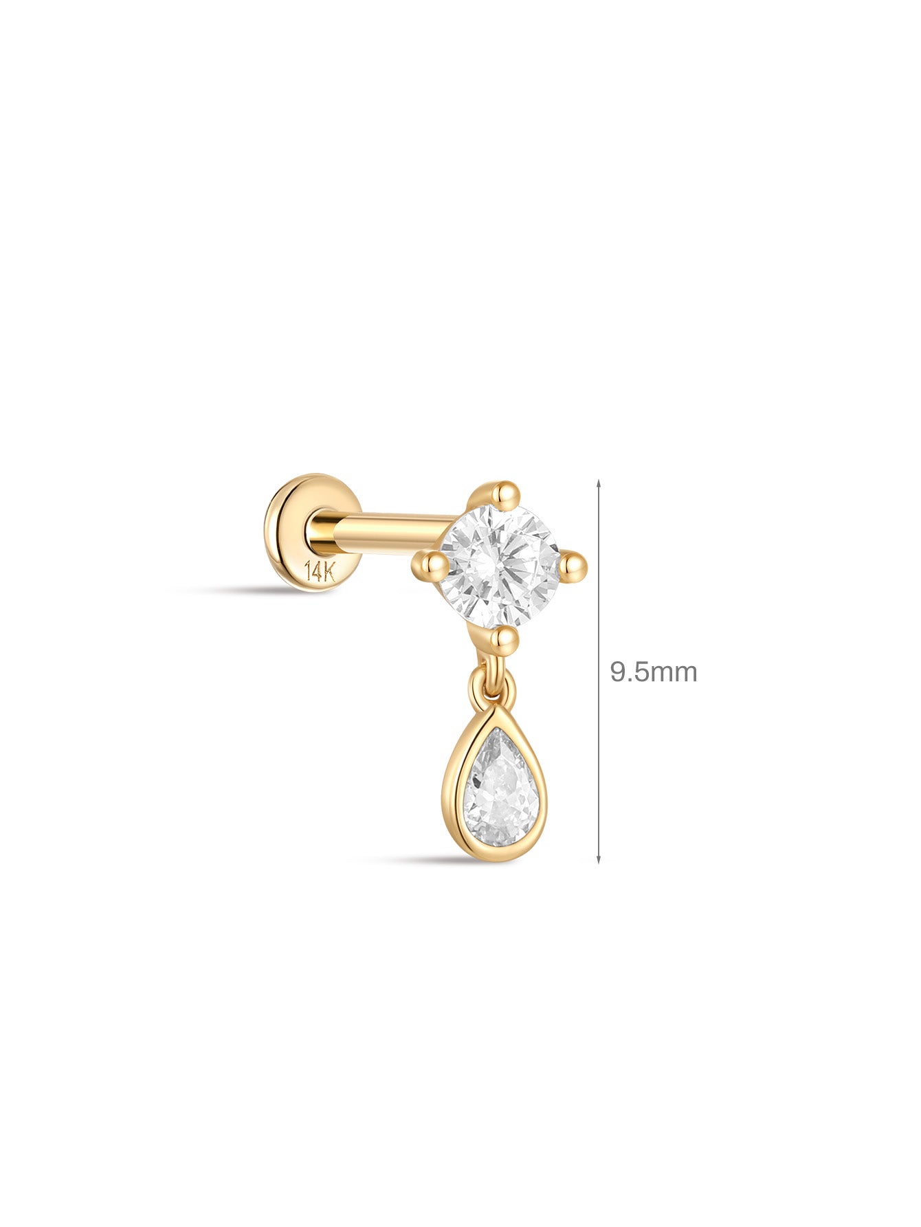14K Solid Gold Four-Claw Tassel Pendant Zircon Ear Piercing Stud