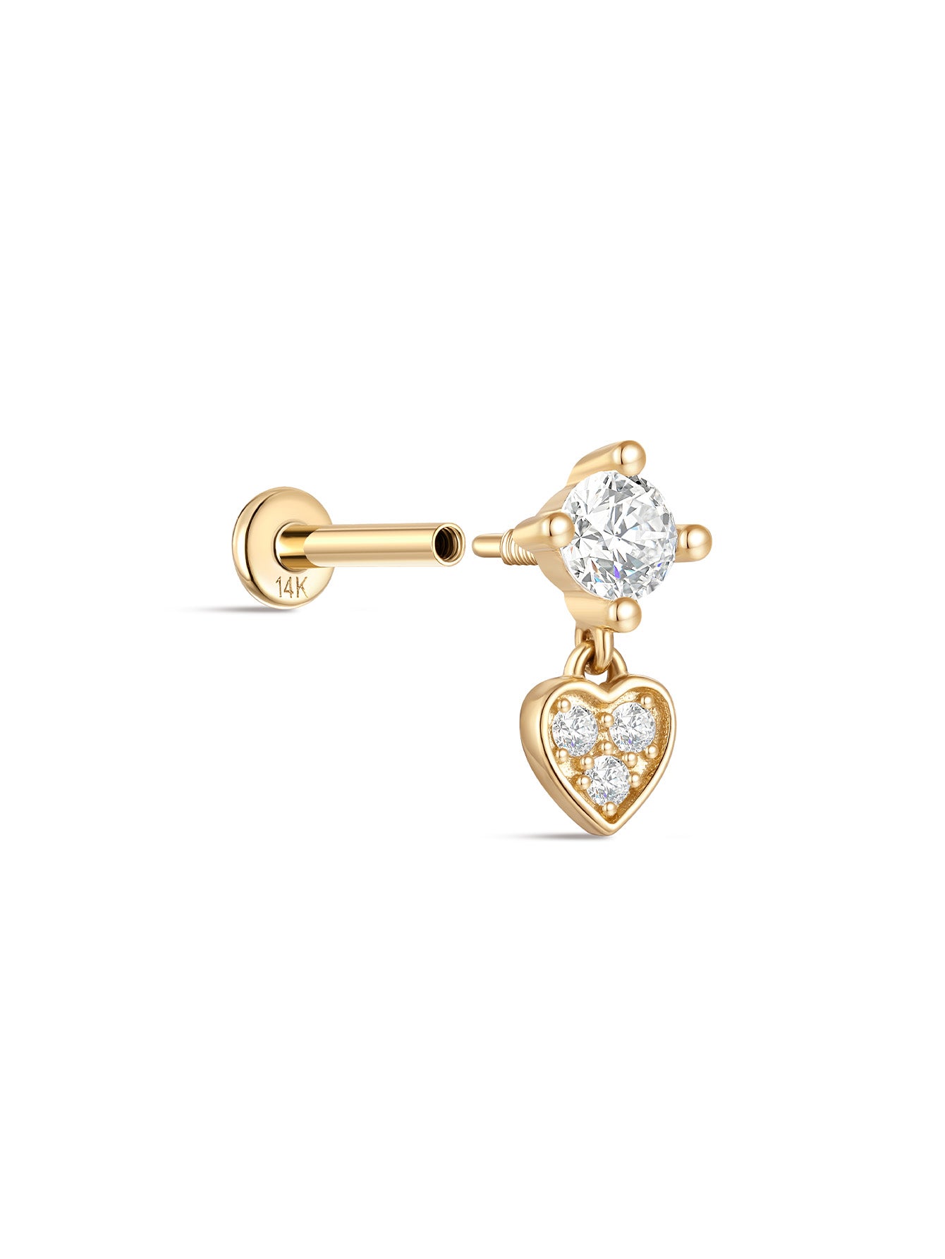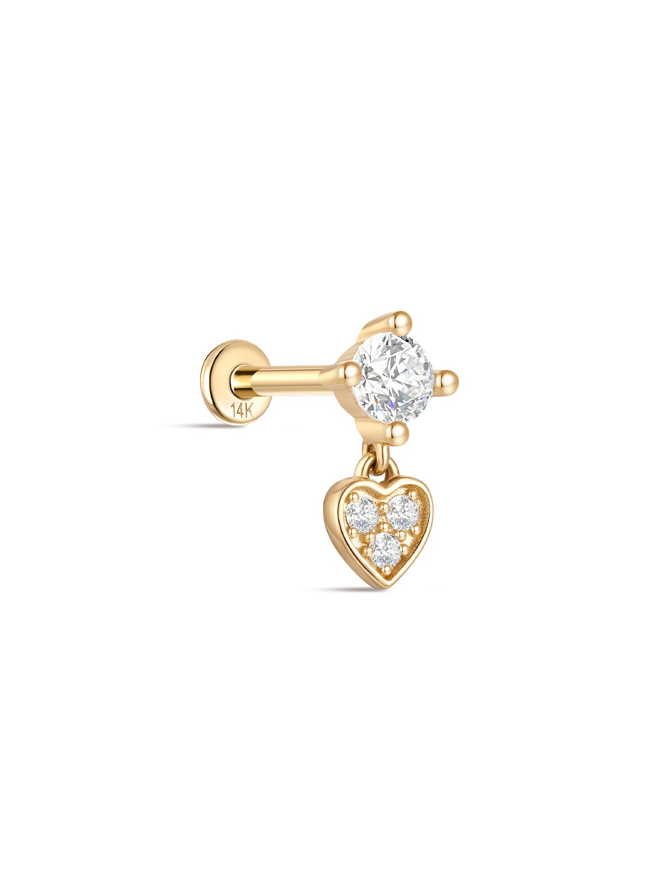 14K Solid Gold Heart Zircon Pendant Ear Piercing Stud