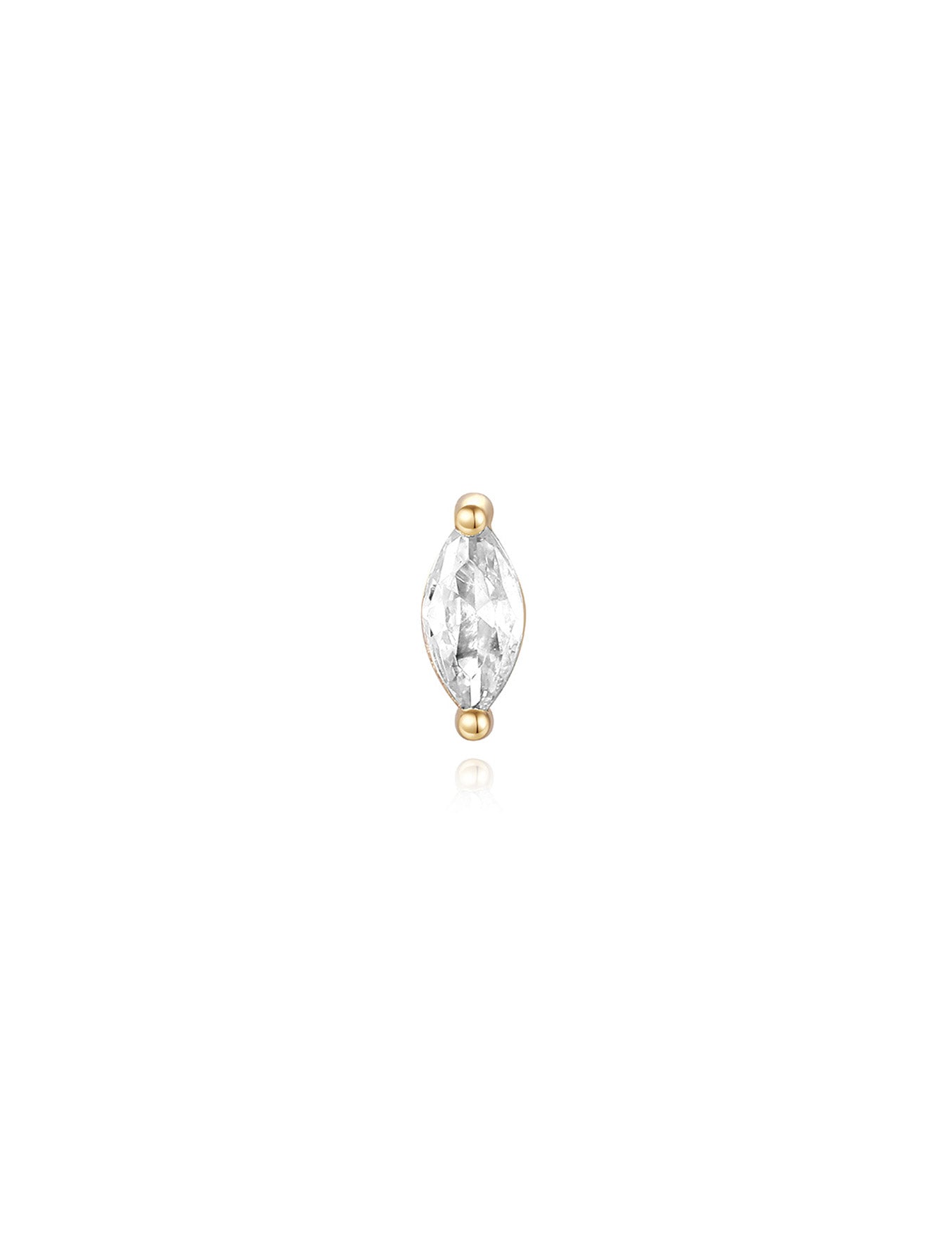 14K Solid Gold Leaf Zircon Thread Ear Piercing Stud