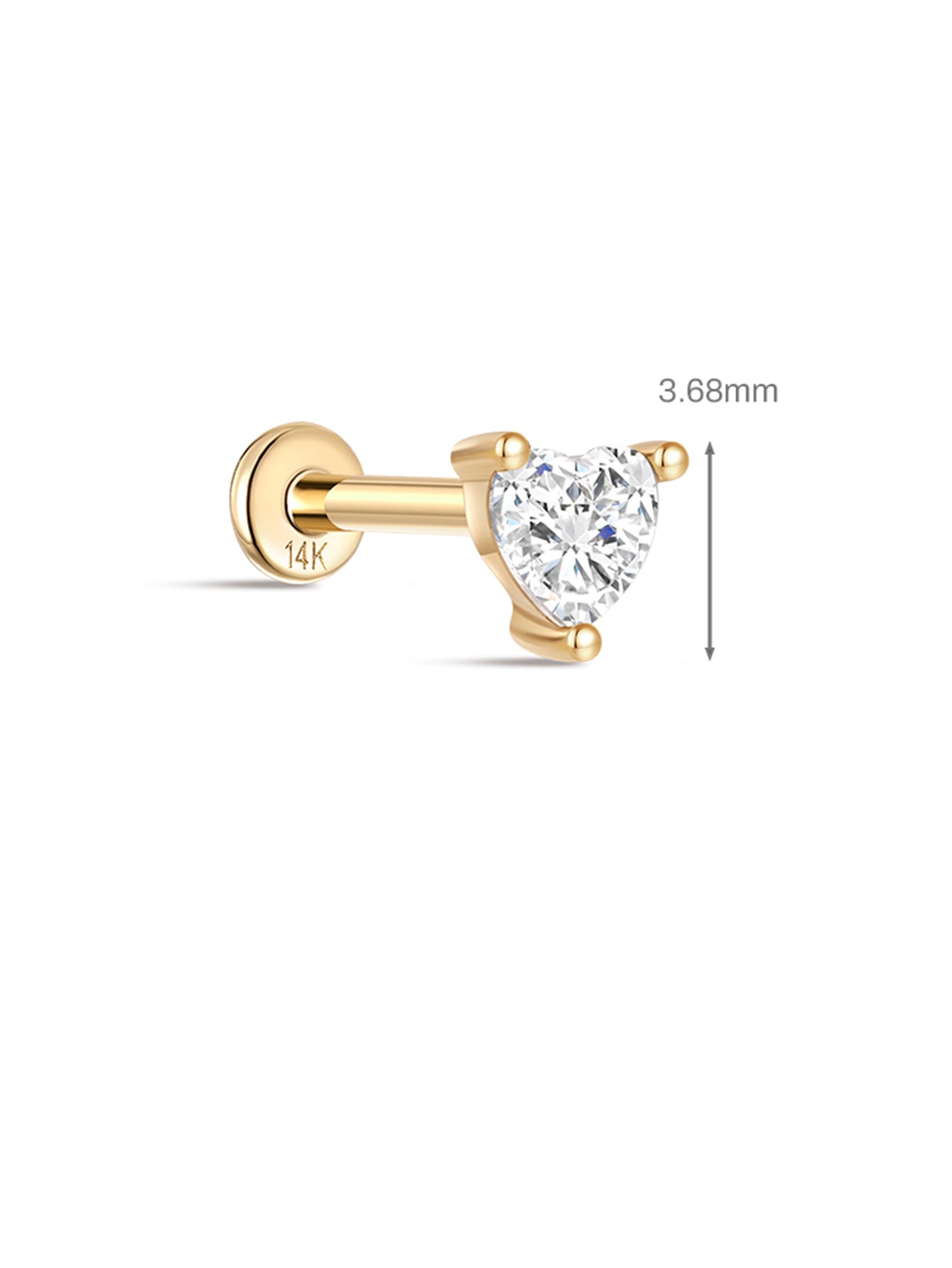 14K Solid Gold Love Heart Zircon Ear Piercing Stud