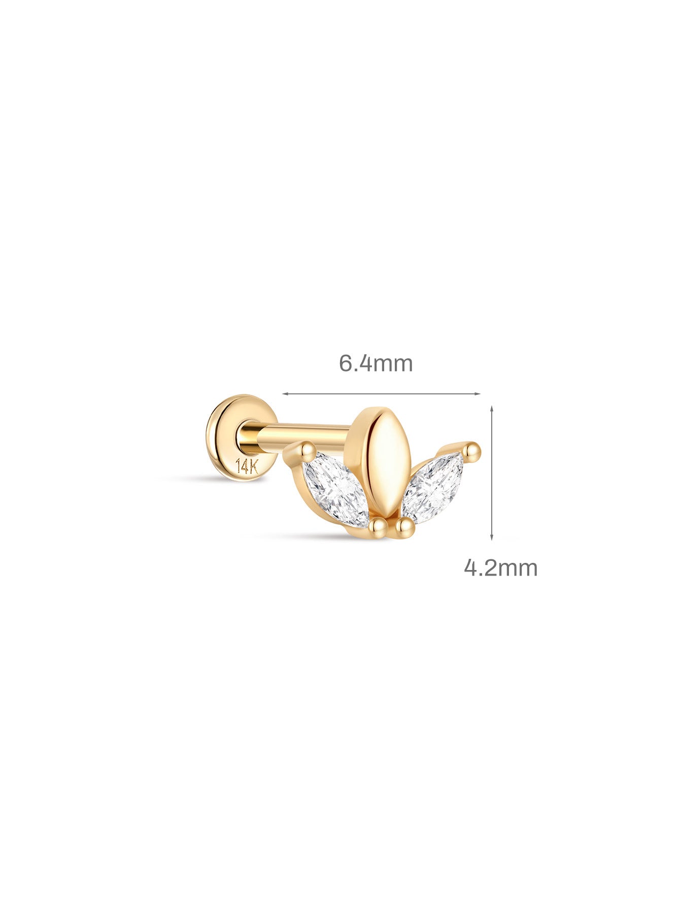 14K Solid Gold Marquise Ear Piercing Stud