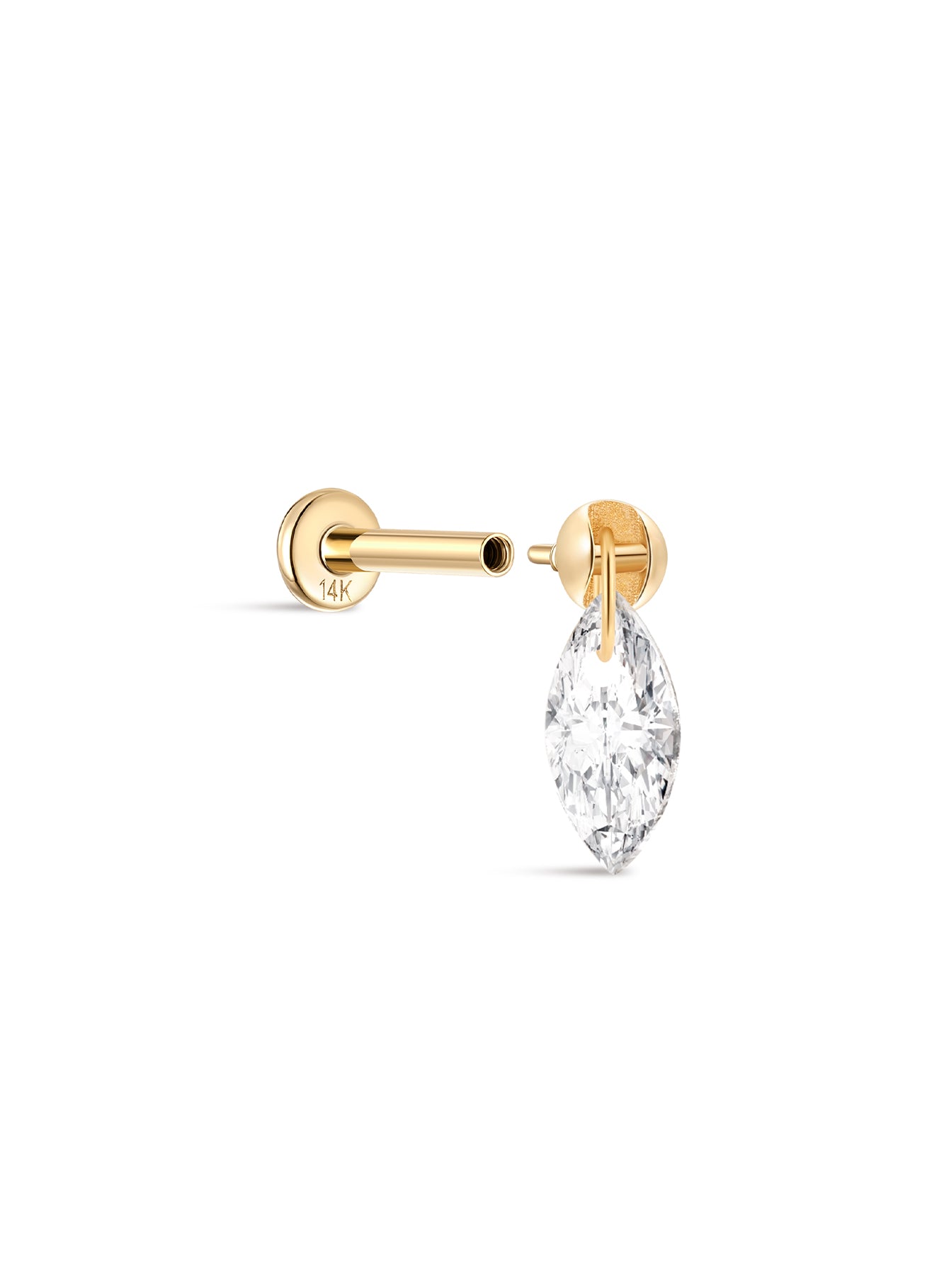 14K Solid Gold Marquise Flatback