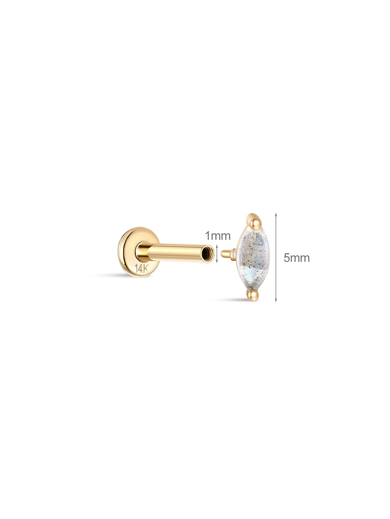 14K Solid Gold Marquise Moonstone Flatback Stud
