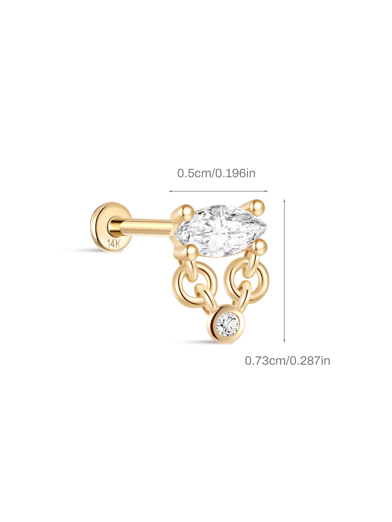14k Solid Gold Marquise Tassel Flatback Ear Piercing Stud