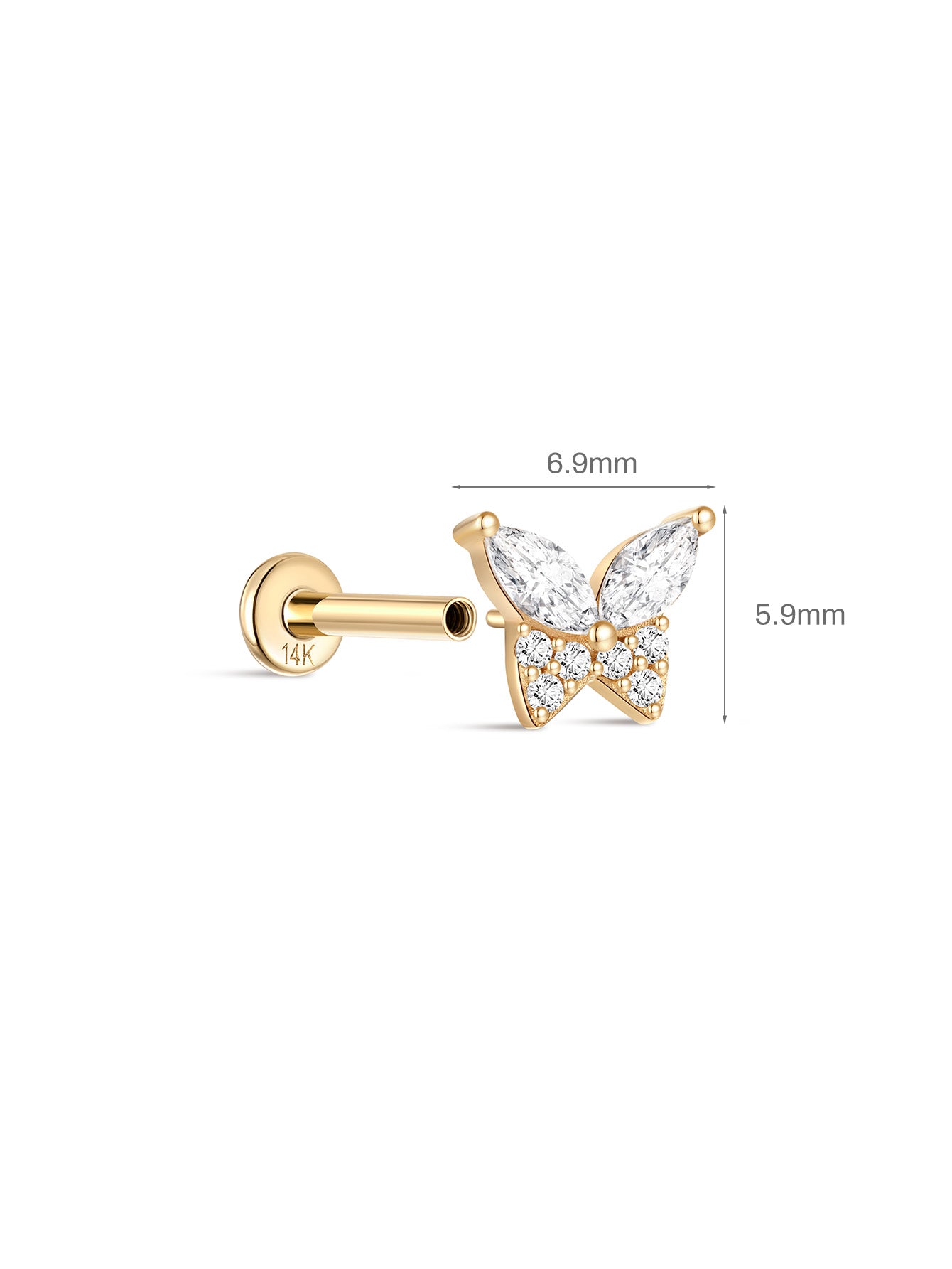 14K Solid Gold Sparkling Butterfly Zircon Ear Piercing Stud