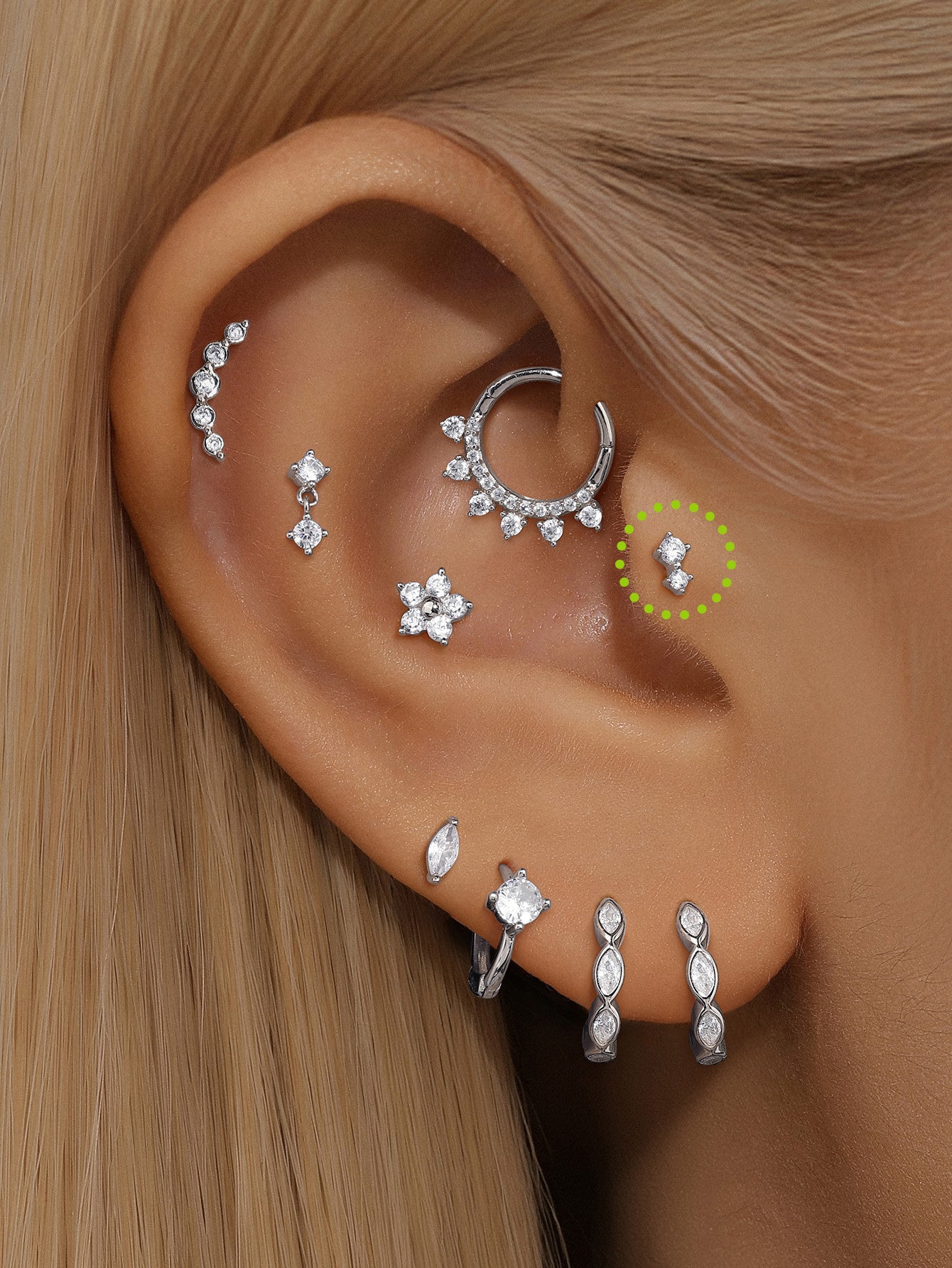14K Solid Gold Splicing Zircon Ear Piercing Stud