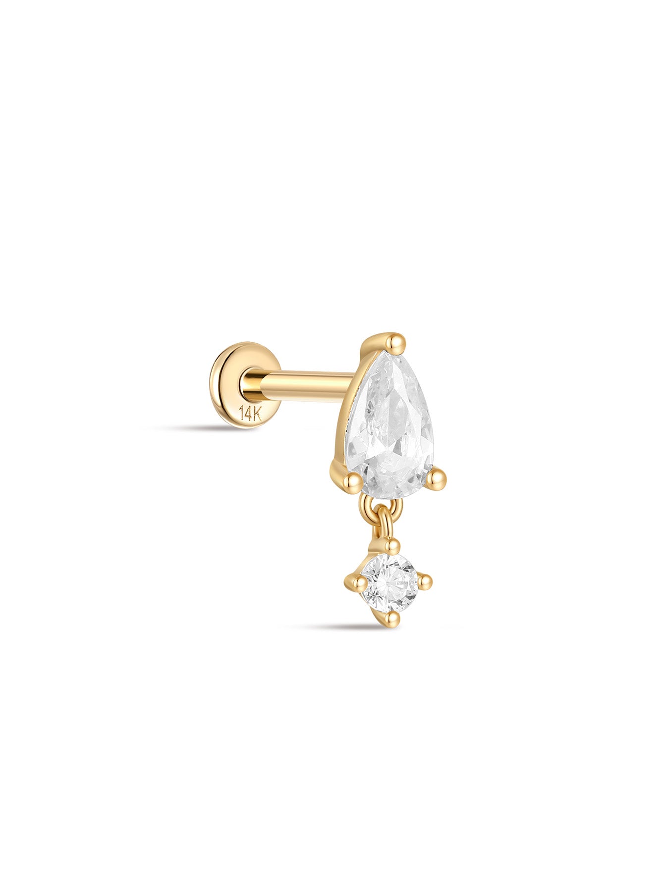 14K Solid Gold Water Drop Tassel Ear Piercing Stud
