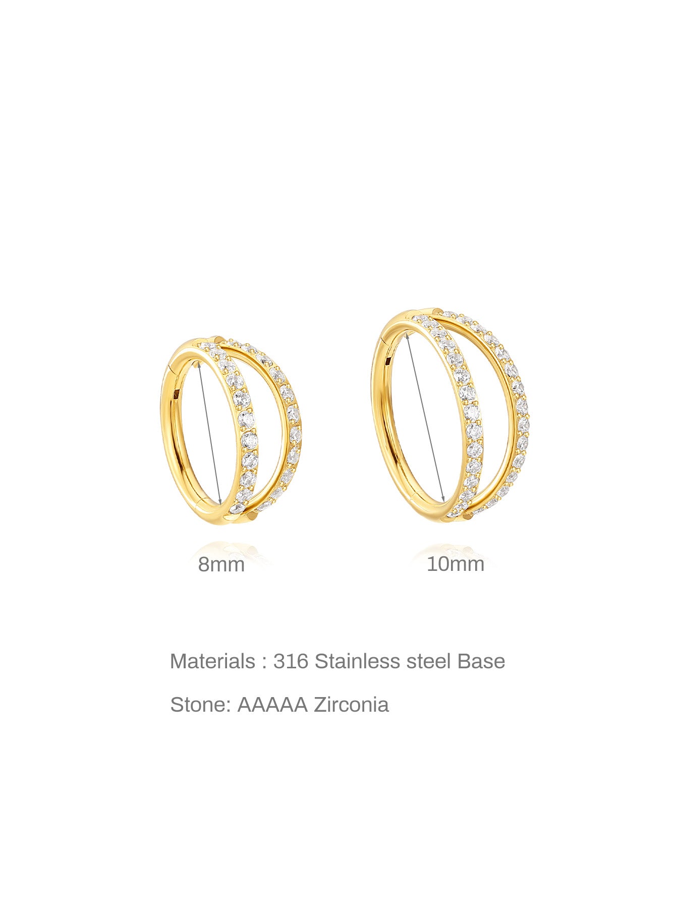Titanium Waterproof Multiple Sizes 5A CZ Double Hoop Cartilage Hoop 16g