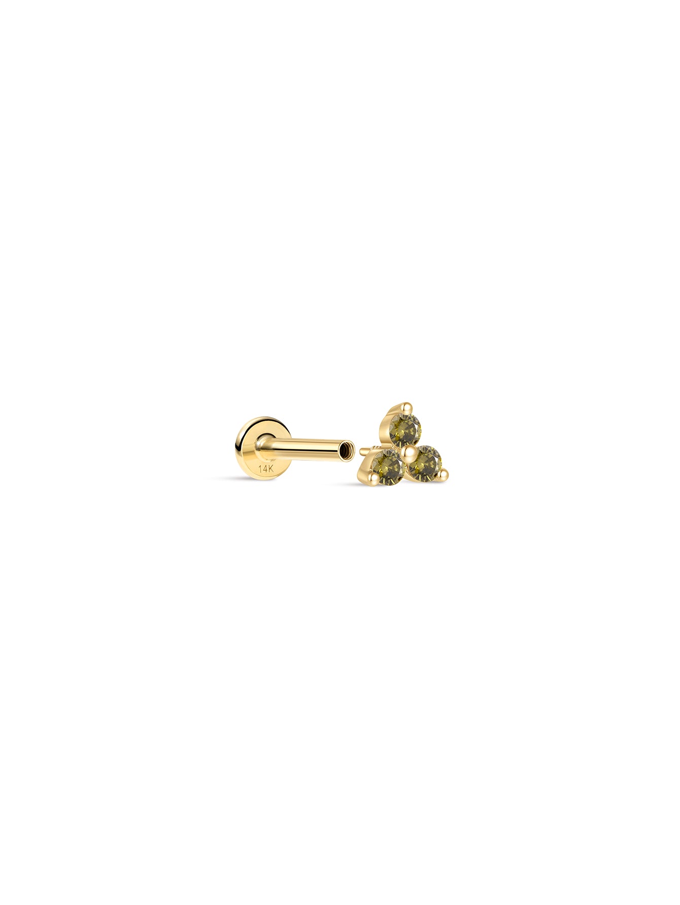 14K Solid Gold August Trinity Shiny Birthstone Stud