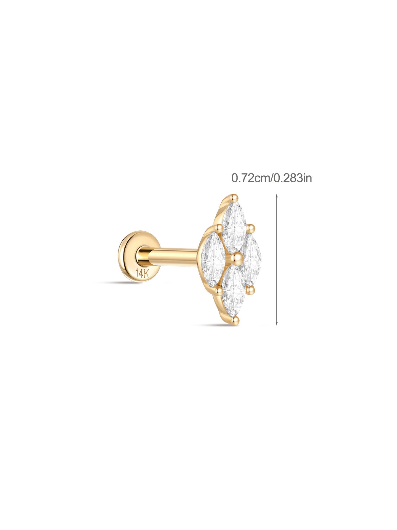 14K Solid Gold Marquise Zircon Splicing Ear Piercing Stud